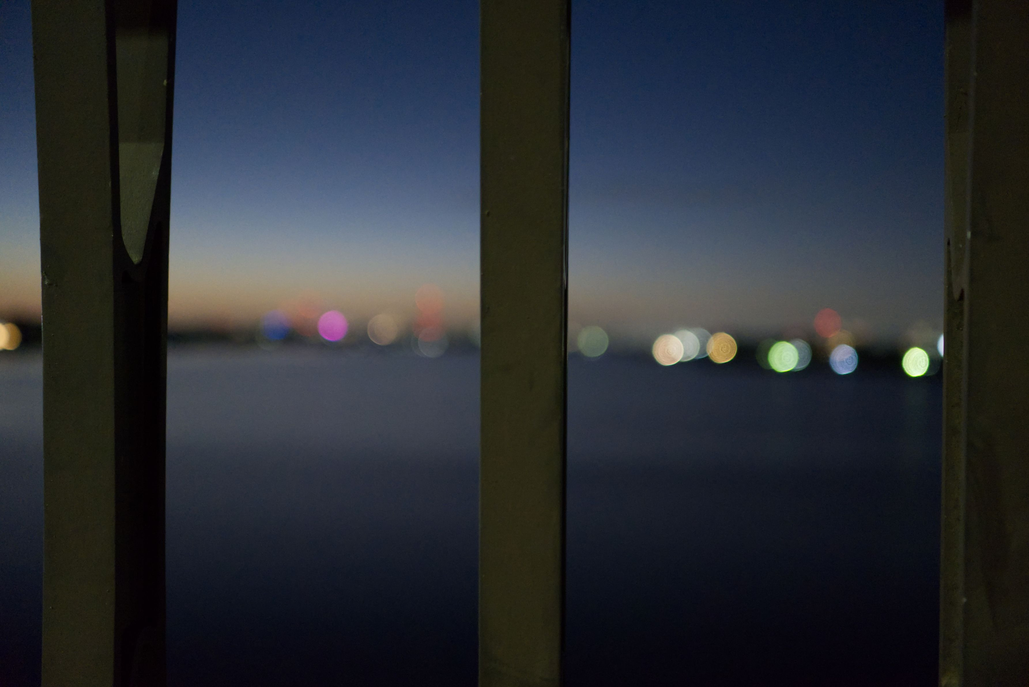 手賀大橋の欄干にフォーカスを当てて、光をぼかしてみました