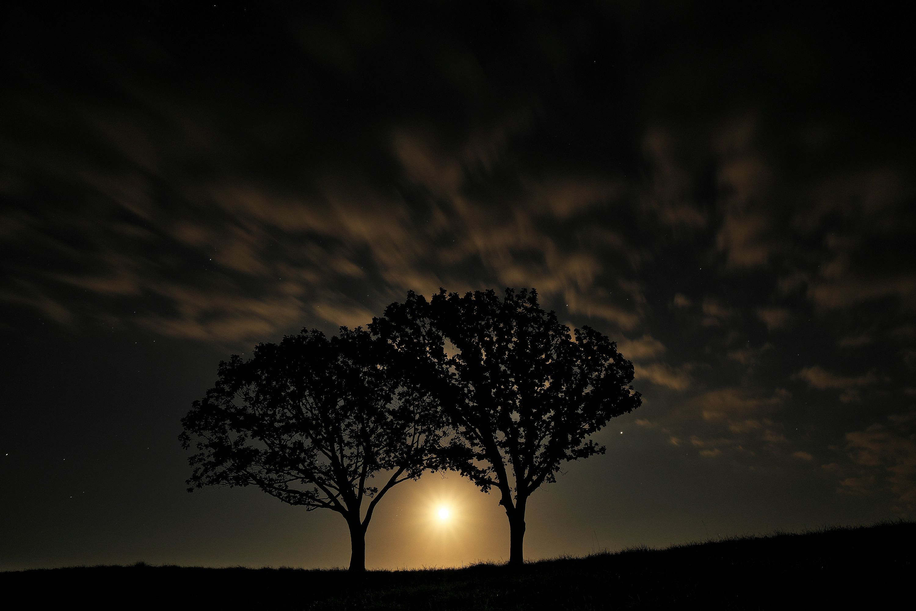 星を撮りに行ったのですがあいにくの天気だったもののちょうど 月が木の間から登ってきていました。 こういう偶然もあるんですね!!