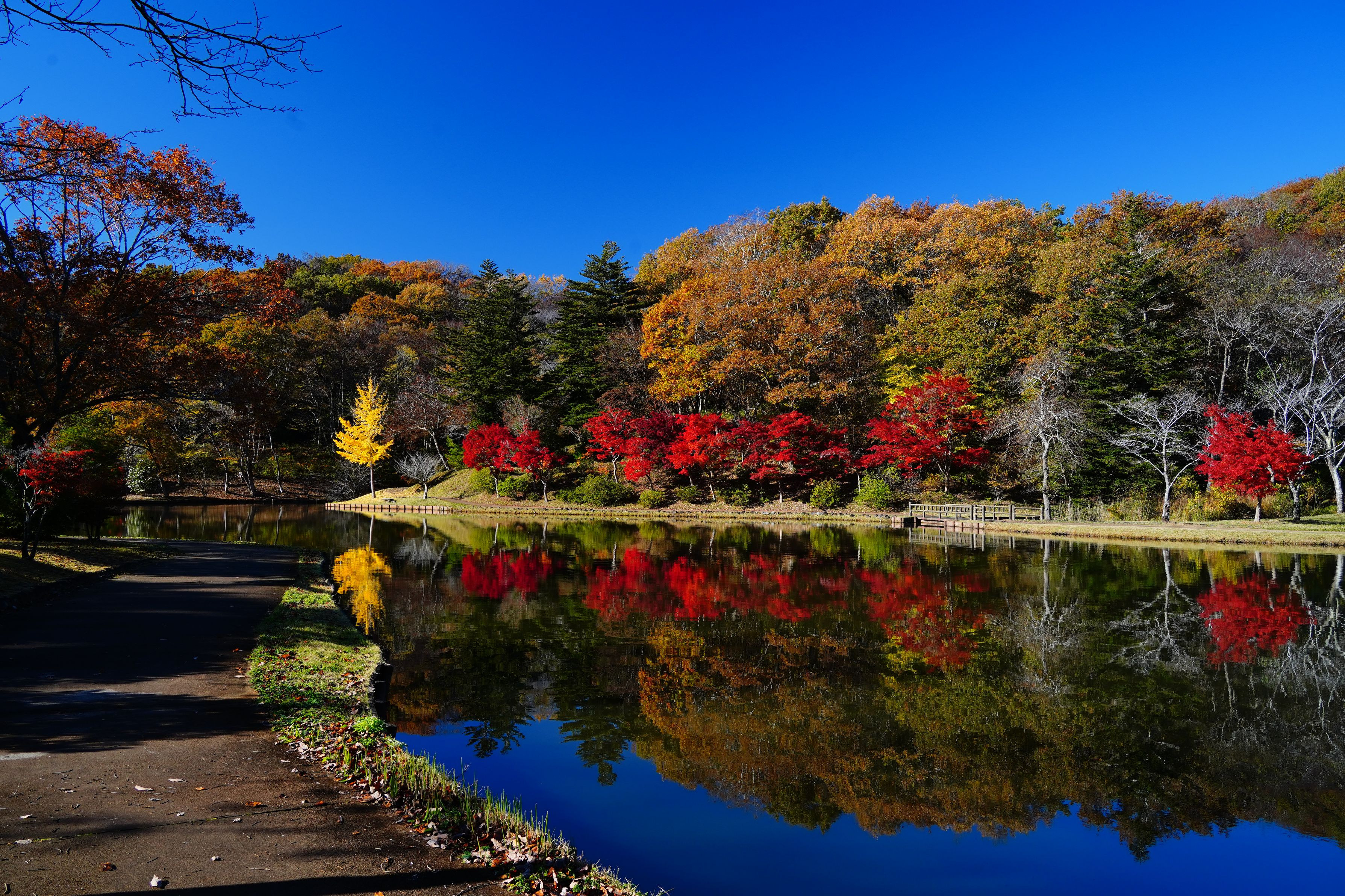 紅葉に囲まれて