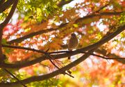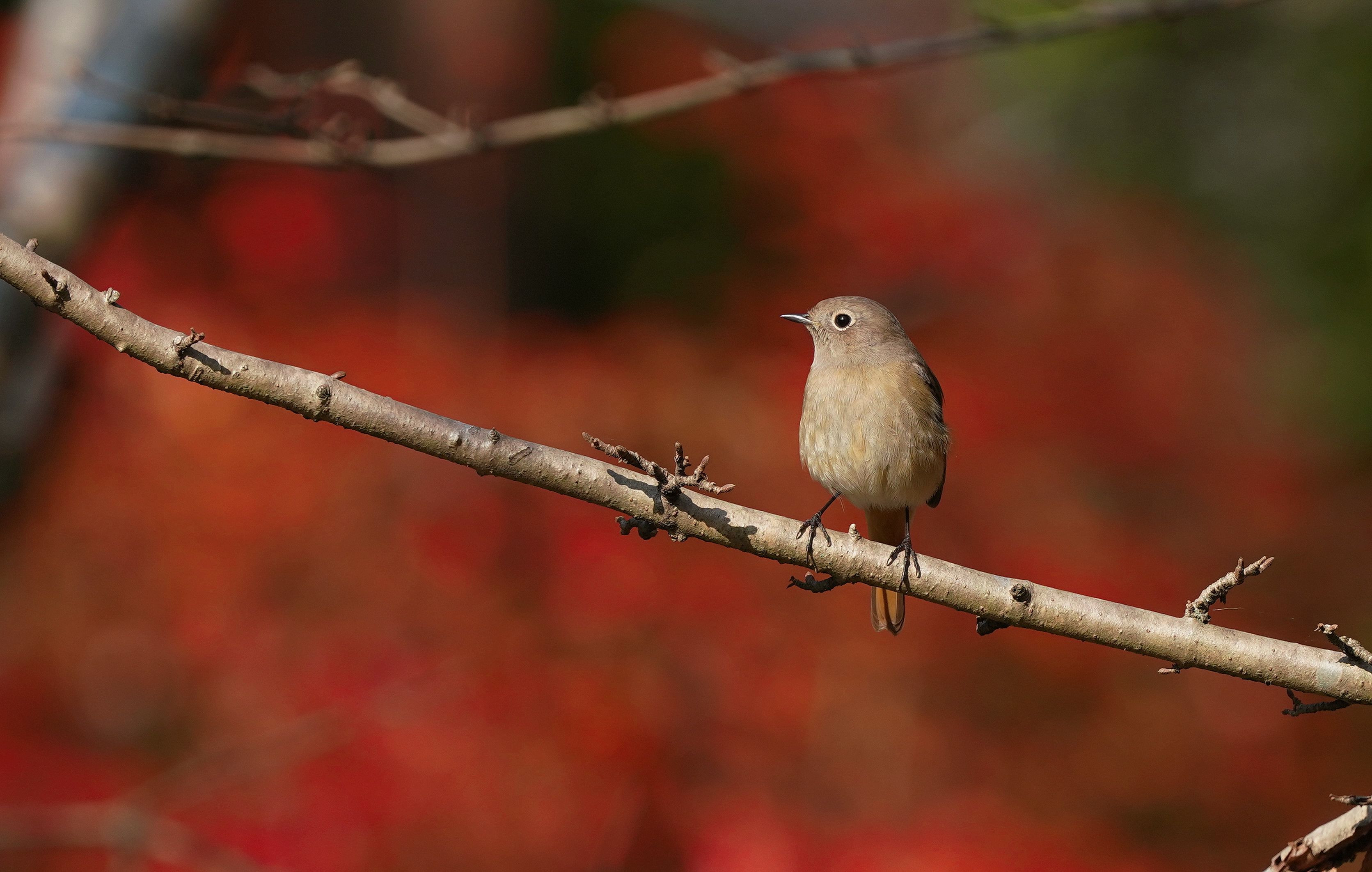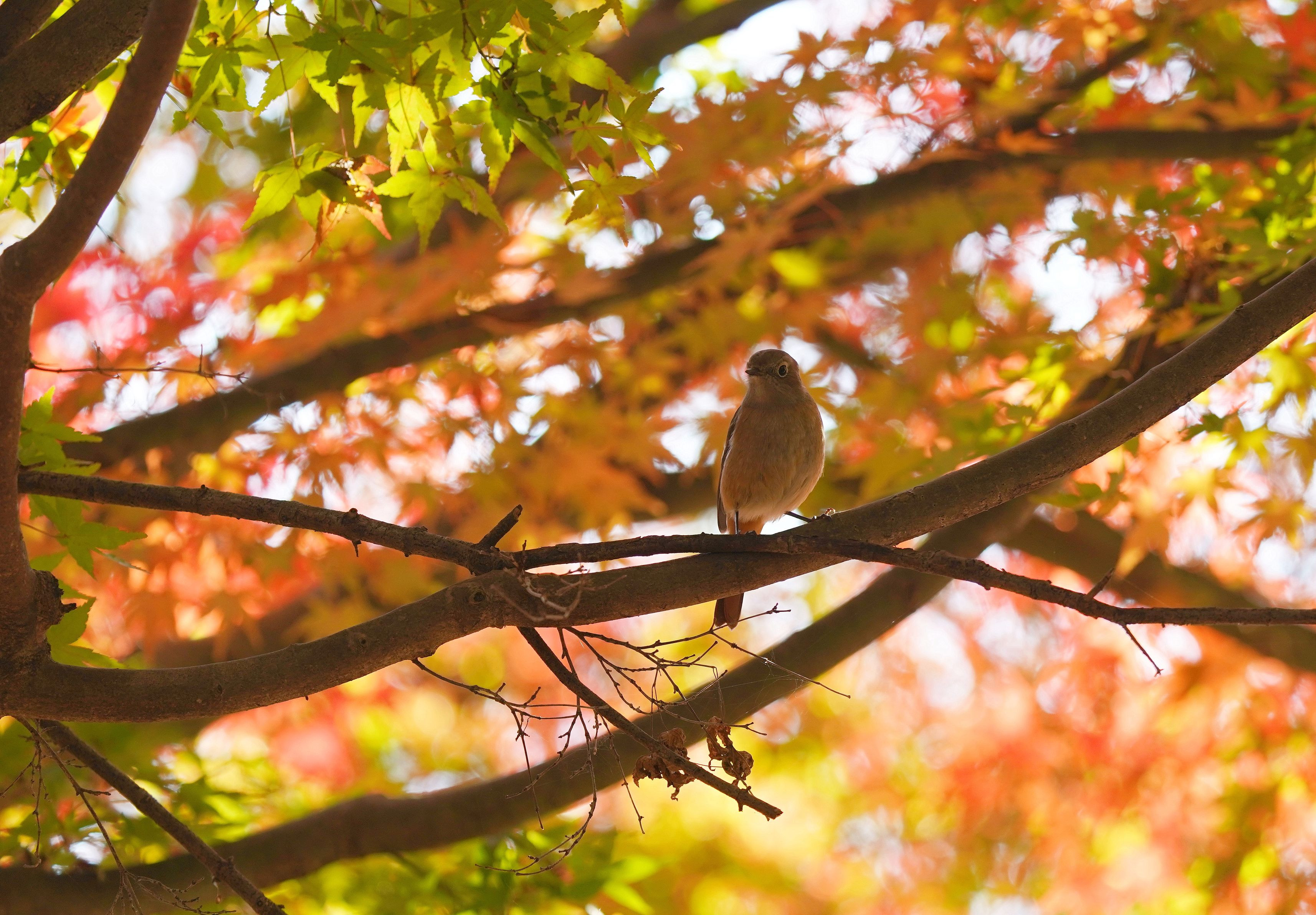 2023 ジョウビタキ♀紅葉真っ盛りの木々の中を飛び回ってます。