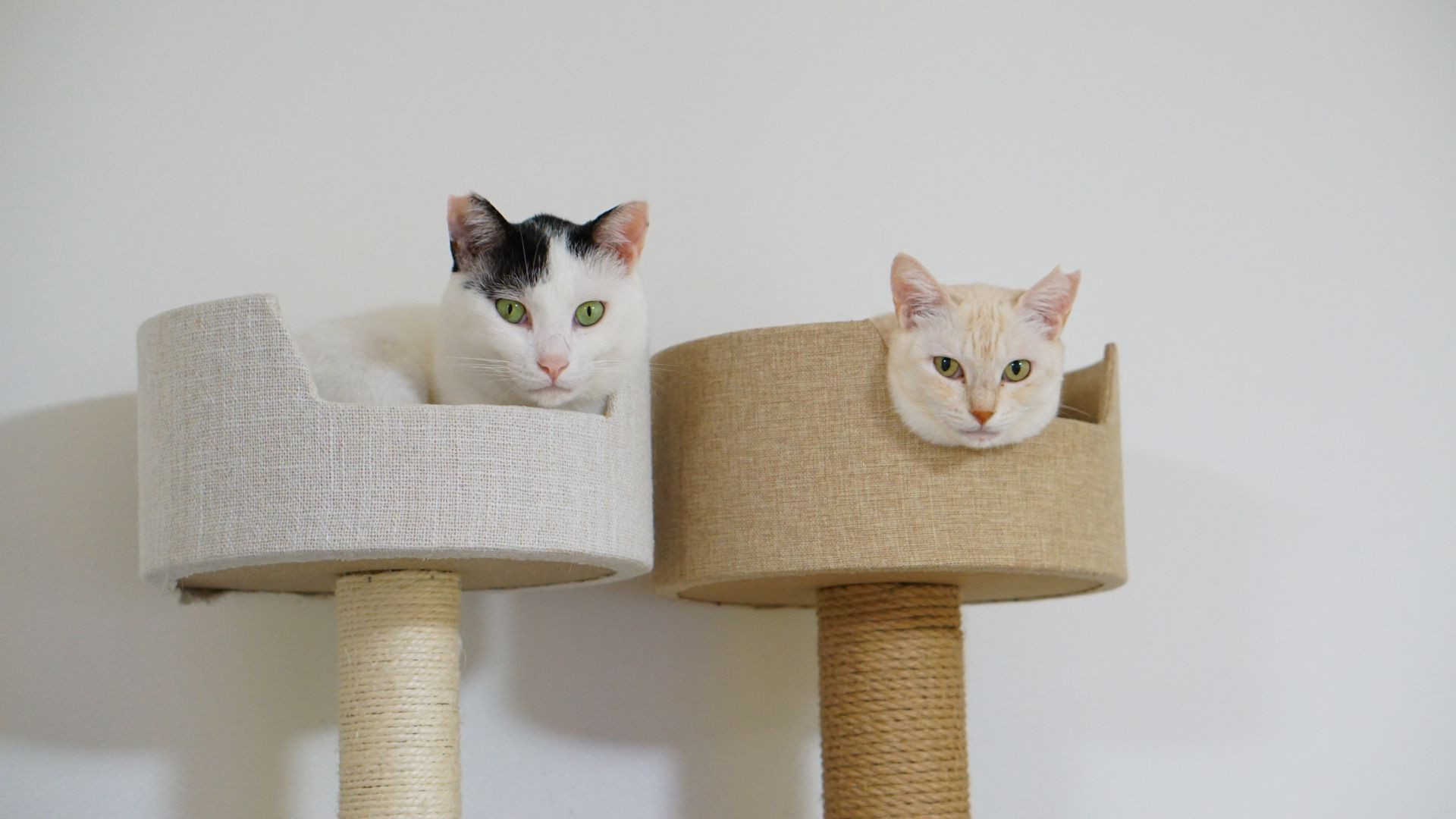 2匹が仲良く並べるように キャットタワーを2つ並べました。 使ってくれた時の感動を 無事に写真に収めれました。