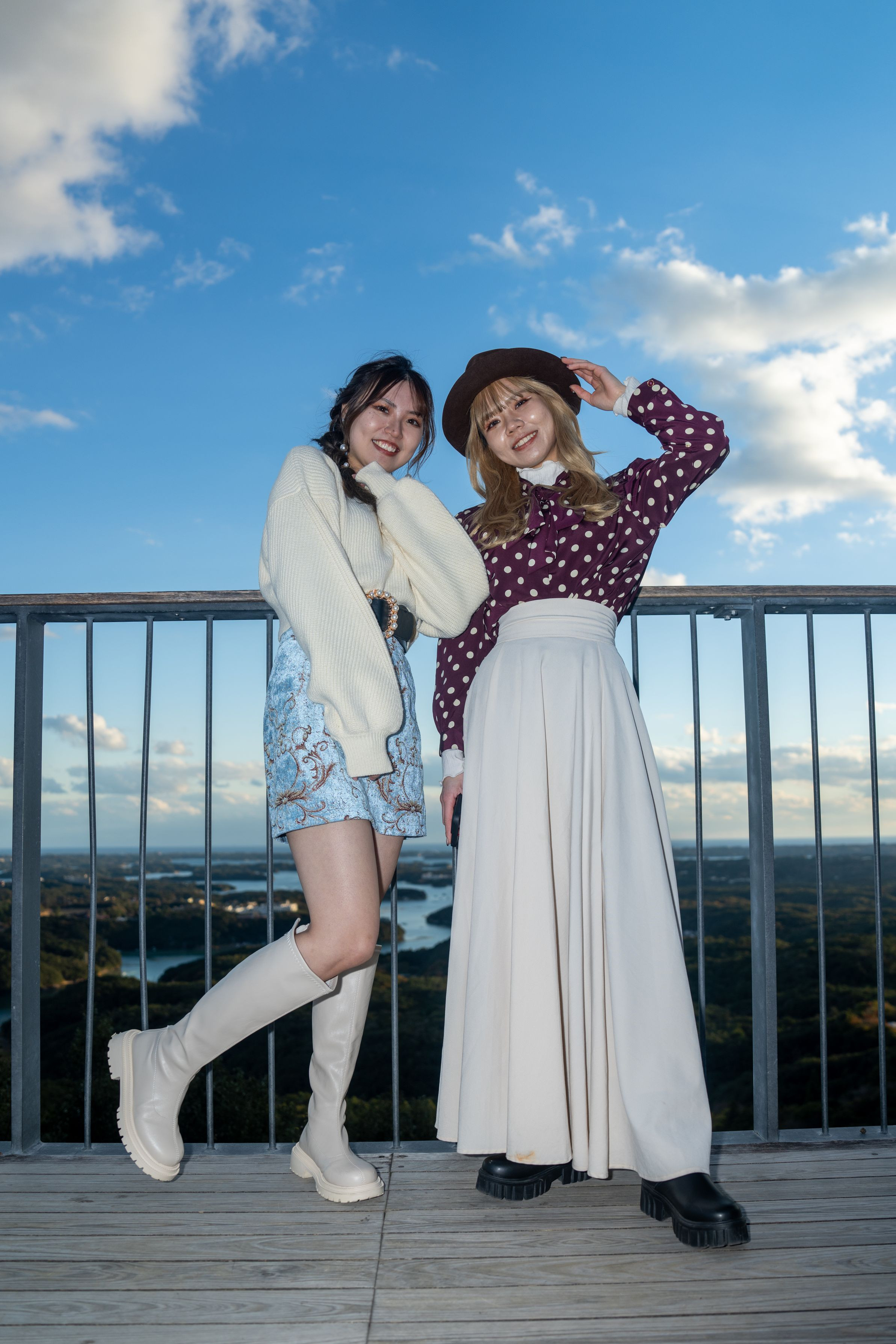 夕陽の時間になるので移動しようと思ったら素敵なお二人が車から降りてきたので、天空のカフェテラスに戻り、声をかけたら撮影許可いただきました。 寒い中コートを脱いで撮影に応じてくれました。