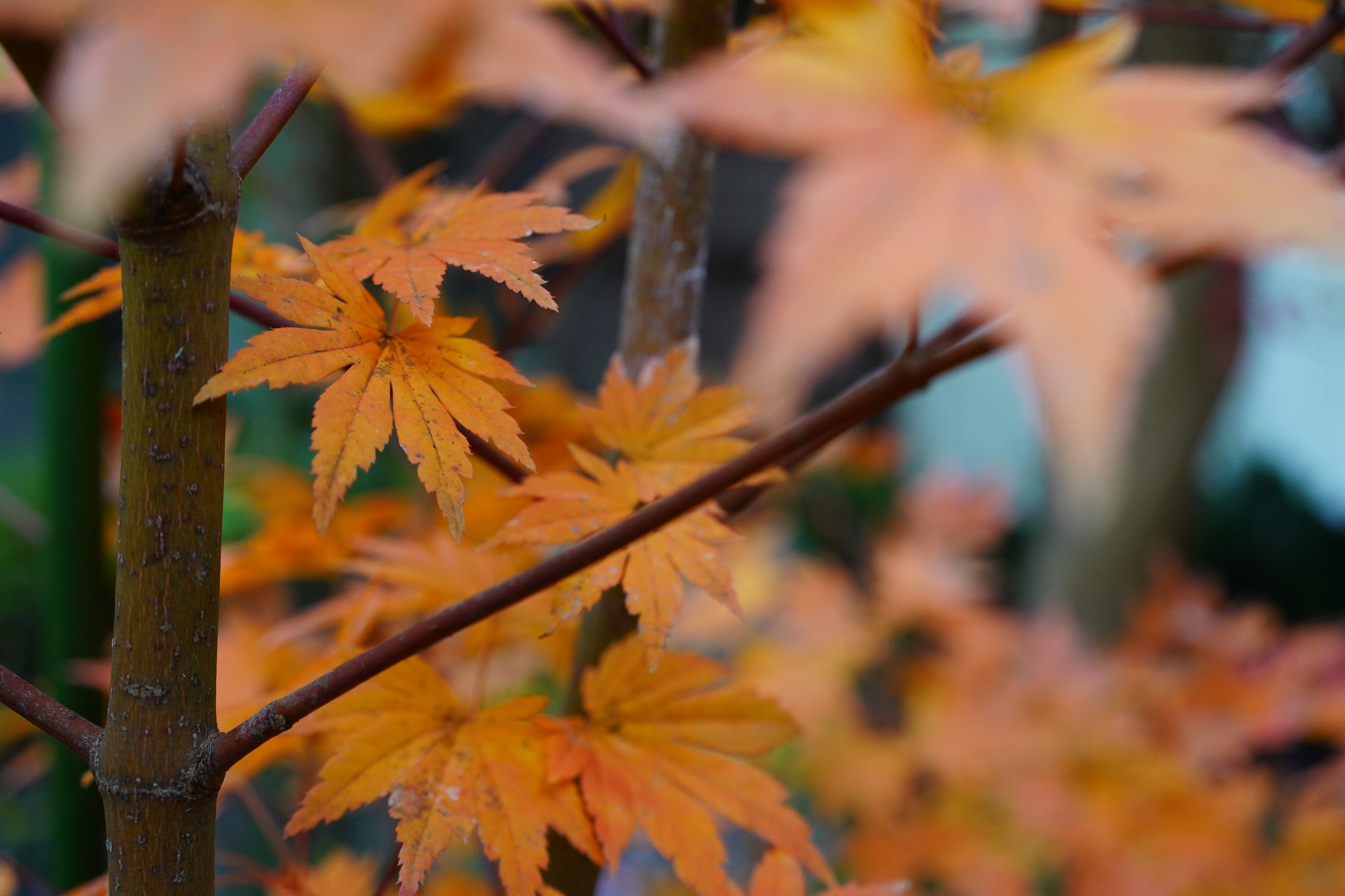 散る手前の紅葉した黄色いもみじ。赤いもみじもいいが、黄色く色付いたもみじもきれい。
