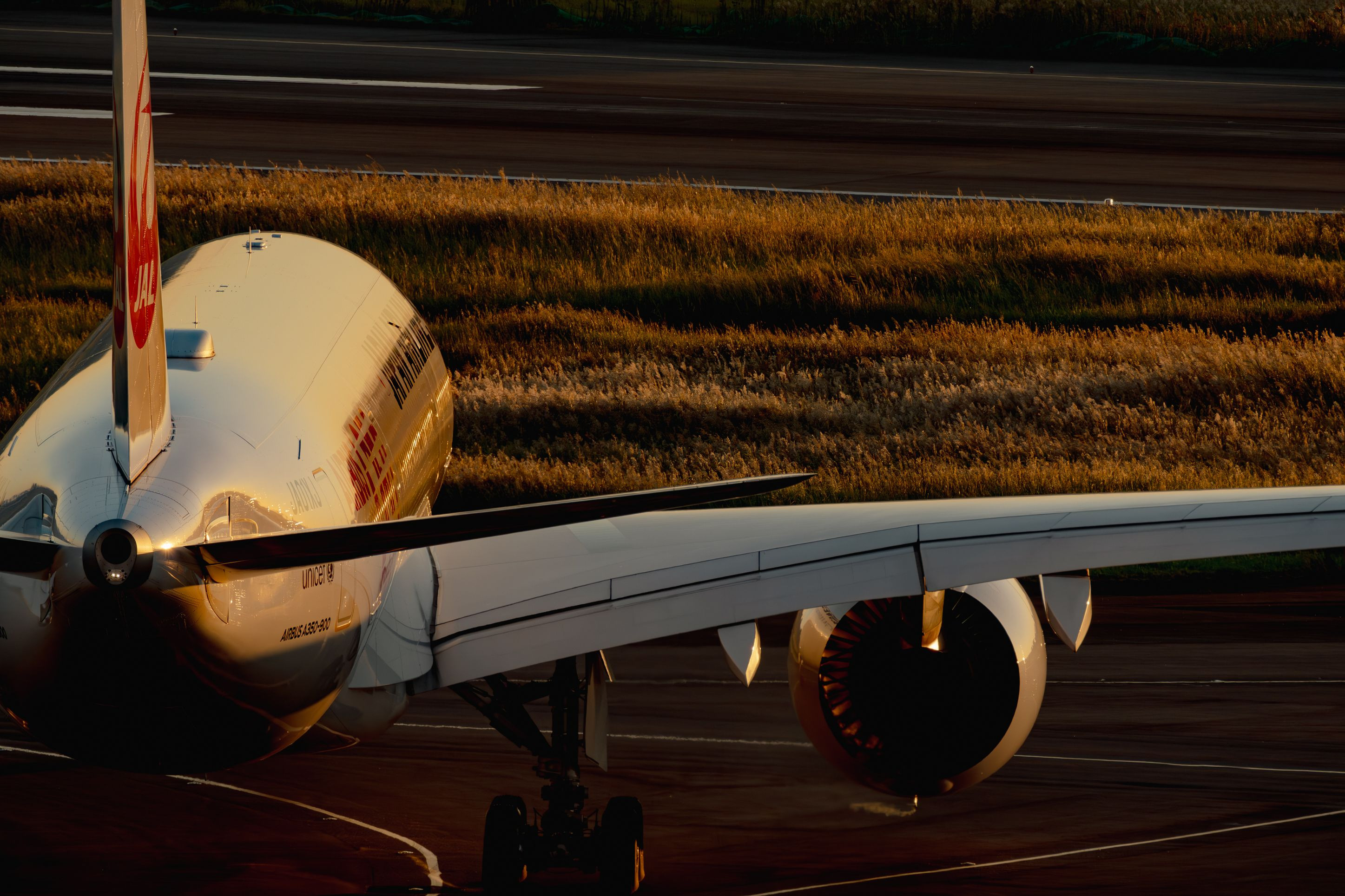 グラマラスな機体に夕日が差し込み、誘導路へと。 光線状態も良く私的には目から鱗が落ちるエロ光線でした😁