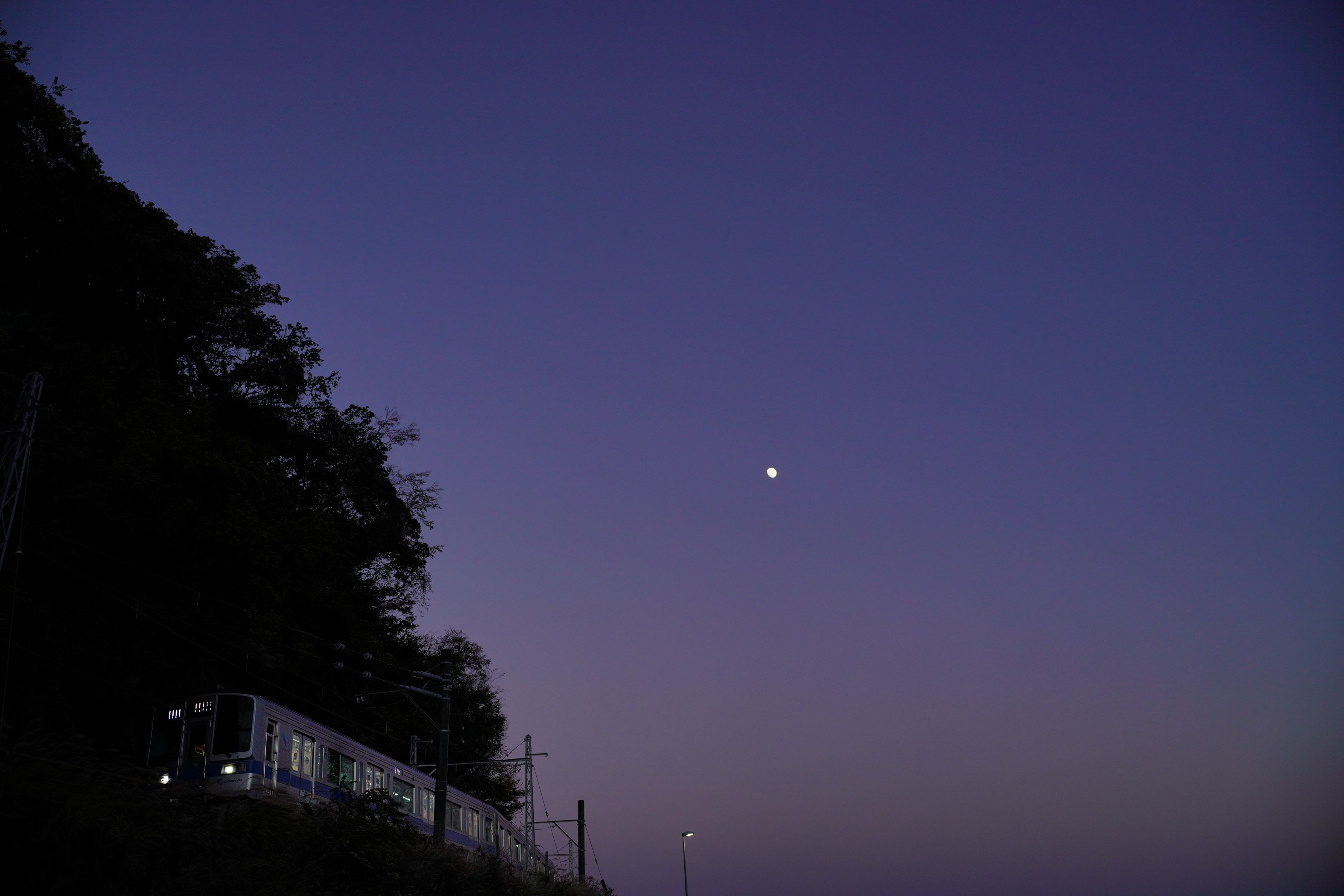 日没直後の#箱根登山鉄道#箱根板橋~風祭。かすかに明るい空が車体を照らします。
