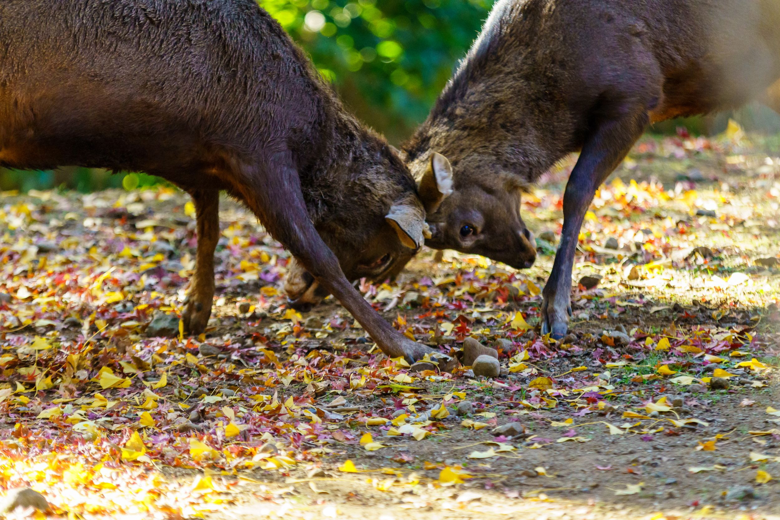 奈良公園でばったり出会った瞬間です。