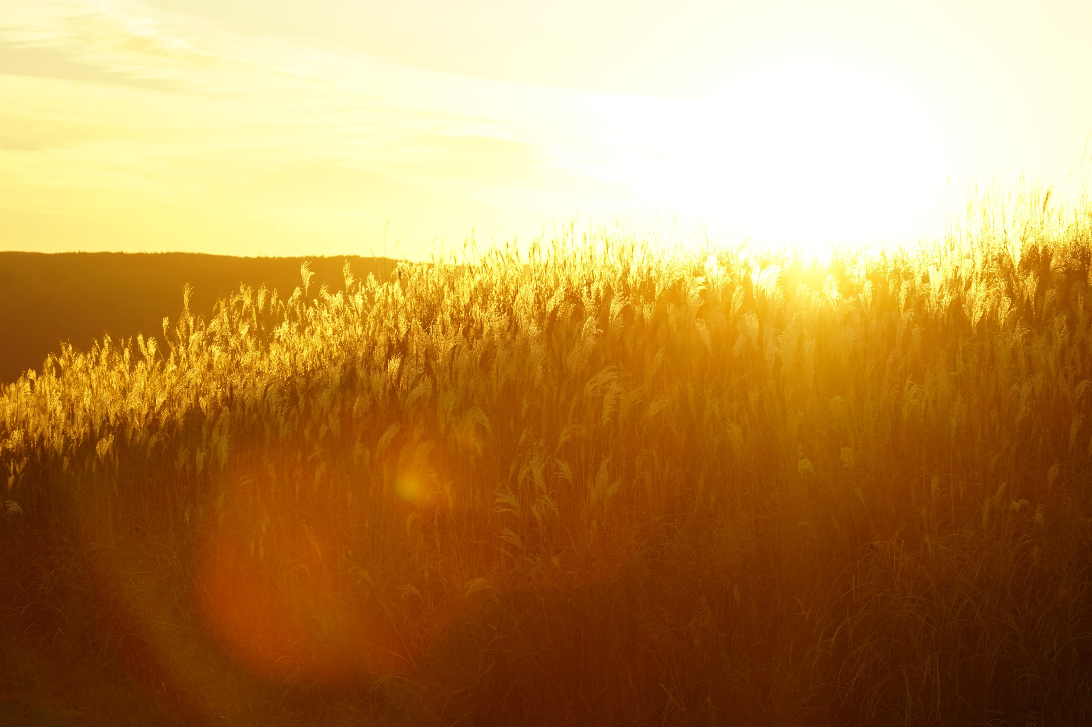 夕日を浴びるススキを撮影してみました。