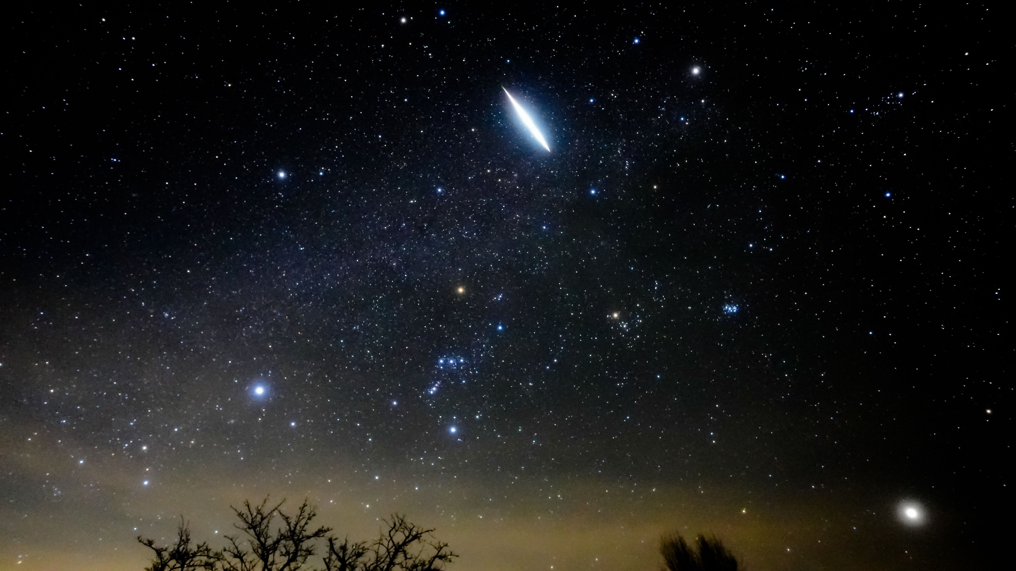 2023年12月14日1時26分 明日は天気が崩れそうなので、極大予報の1日早く撮影へ ふたご座流星群のとても明るい流れ星が、ふたご座のカストルのすぐ近く(放射点) あたりから流れた!