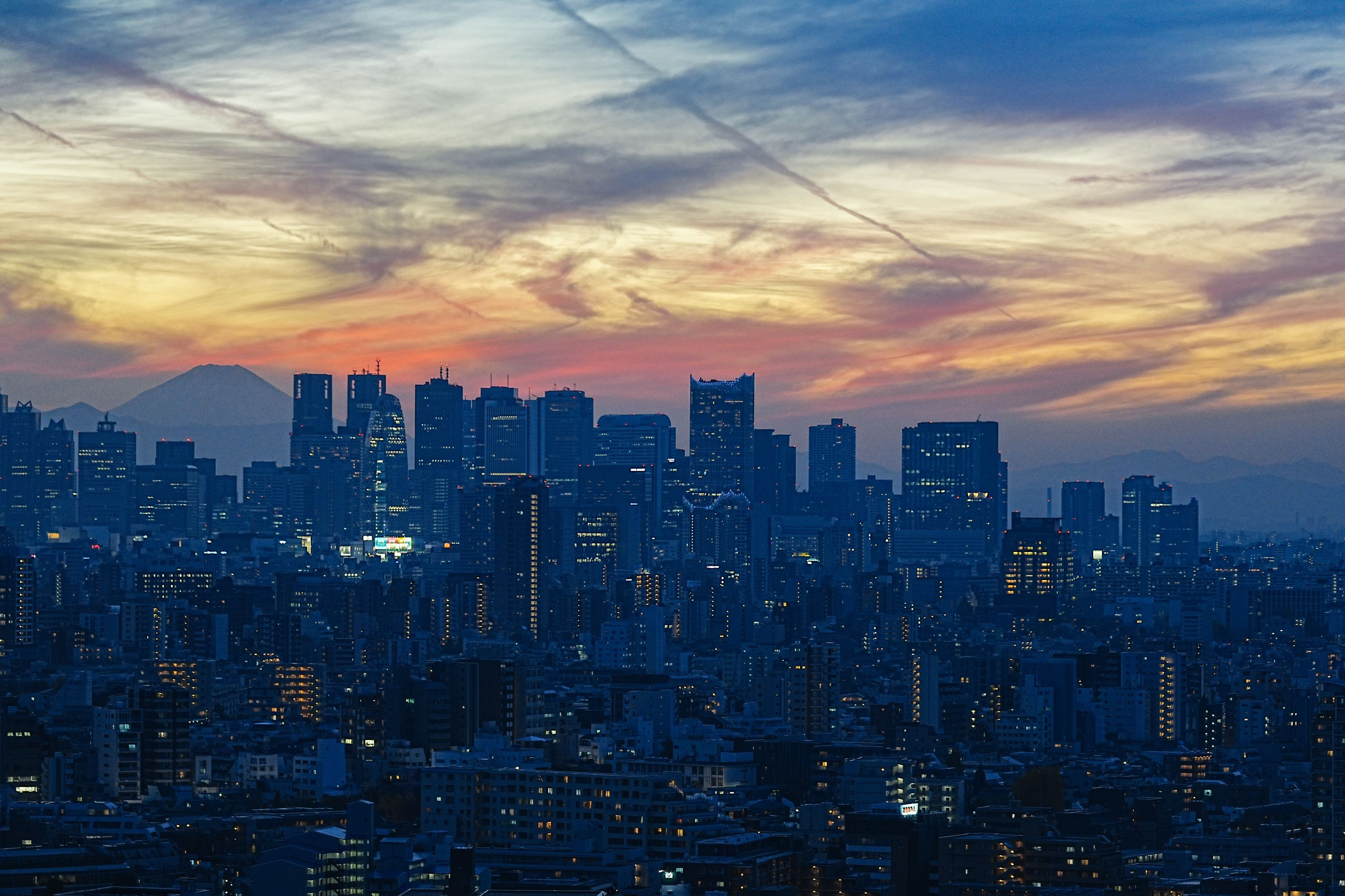 文京シビックセンター展望ラウンジから撮影しました。 富士山バックに新宿の高層ビル群を望められるのがいいですね(^o^) 土曜日なのでビルの灯りはかなり少なめでした