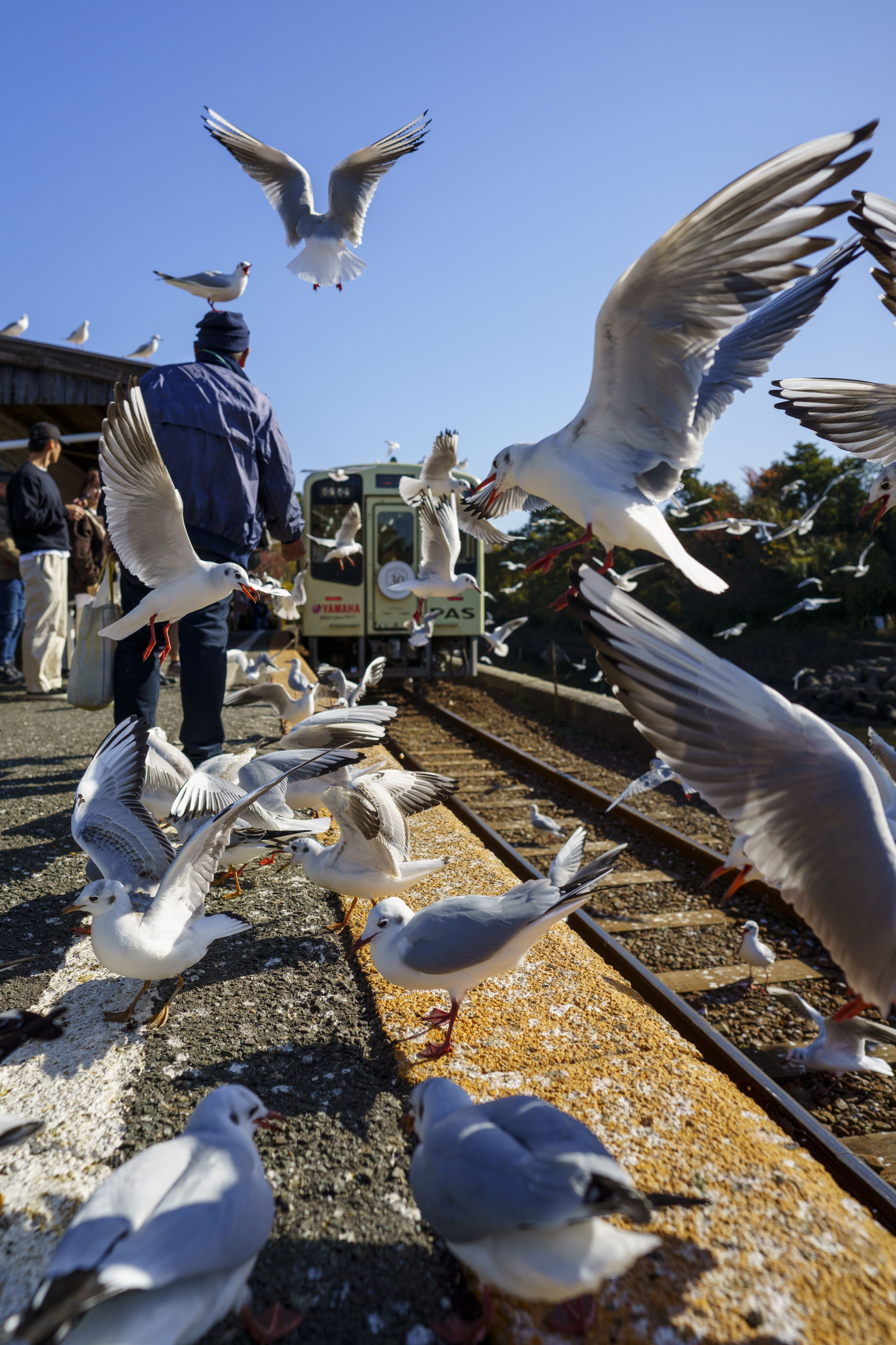 浜名湖の沿いの天浜線佐久米駅に、冬の季節にのみ訪れる、渡り鳥ゆりかもめの大群です。 駅には毎年、ゆりかもめを見ようと、パンなどの餌を片手にたくさんの観光客が訪れます。