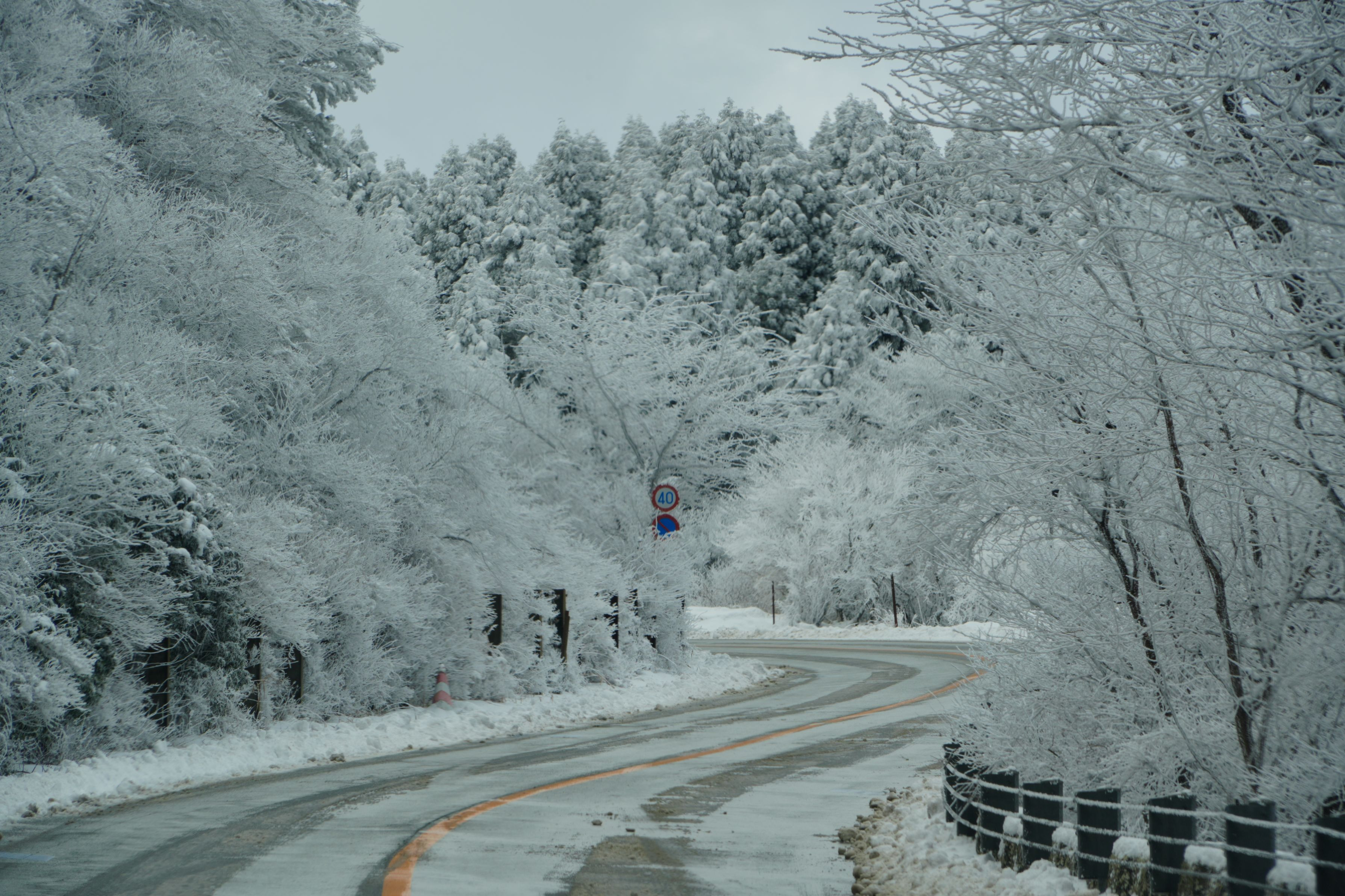 数日間の冷え込みで阿蘇の山も雪化粧となりました。 阿蘇登山道も霧氷で、とても綺麗でした!!