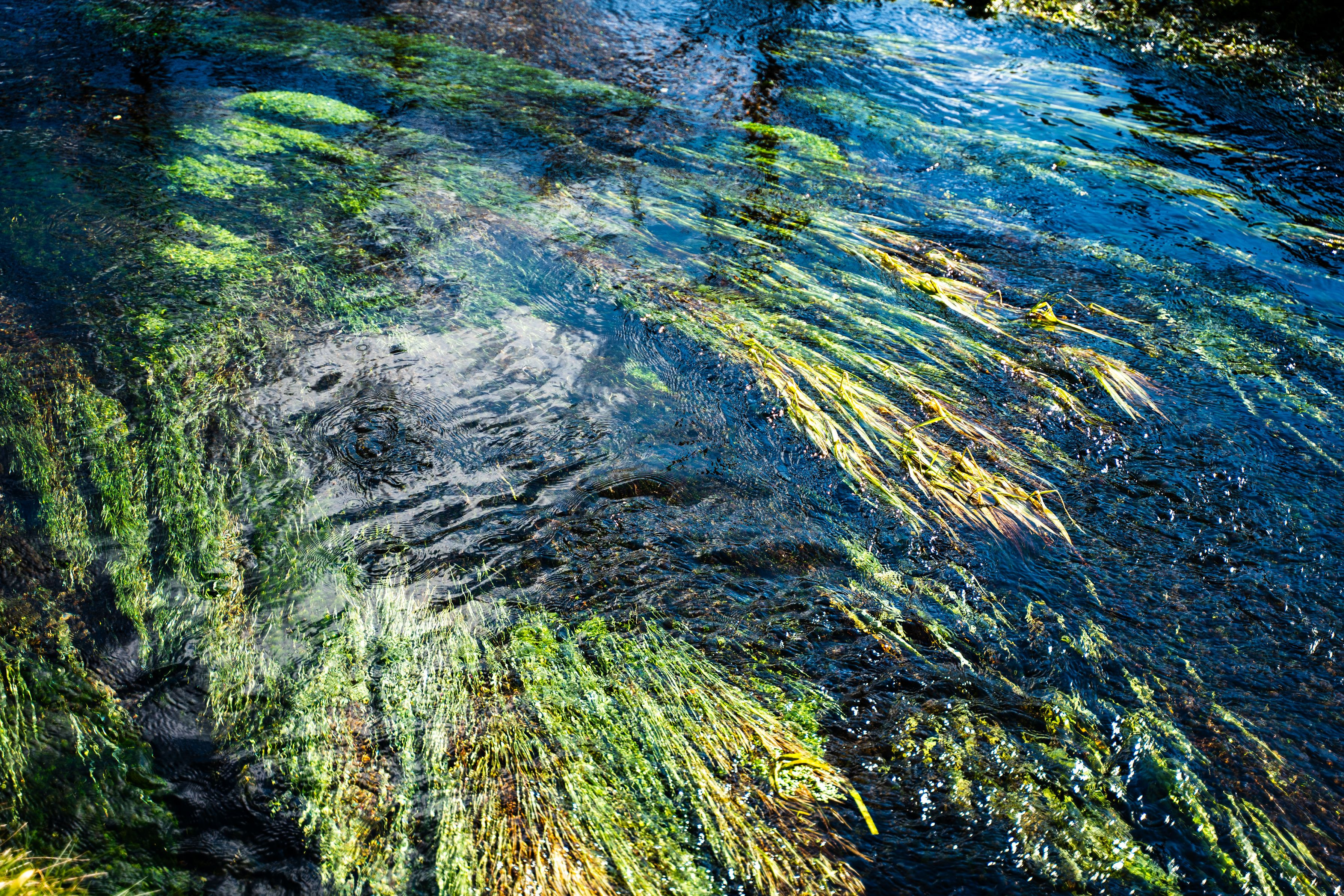 水の躍動感と浮き草