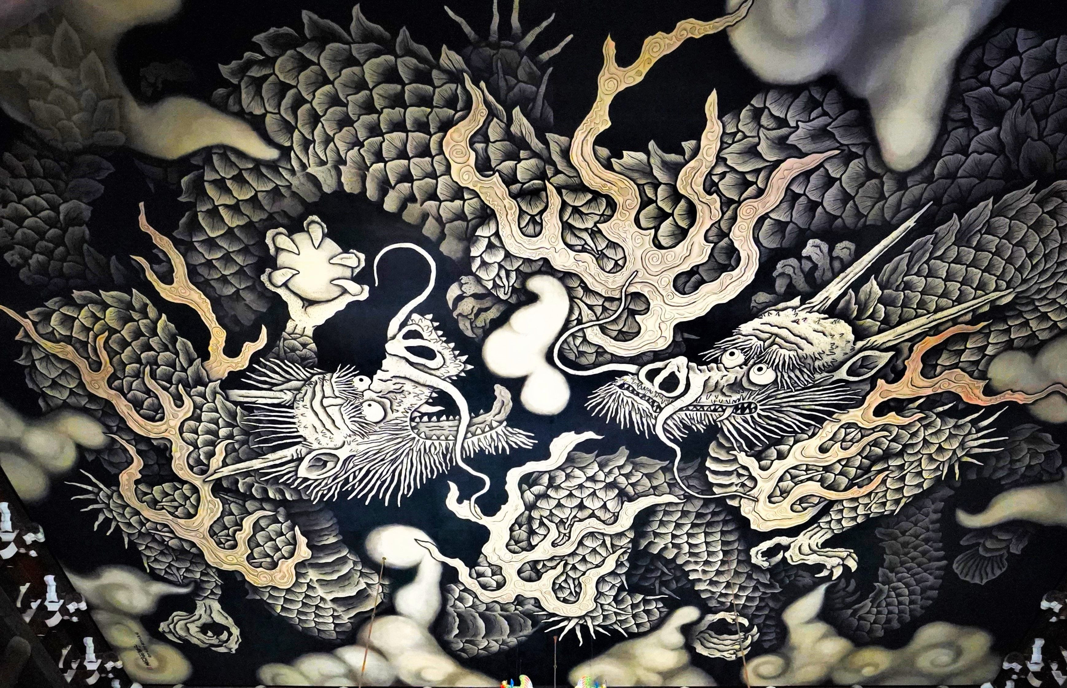 新年あけましておめでとうございます。 本年もよろしくお願い致します。 建仁寺の双龍図と襖絵の龍図です。