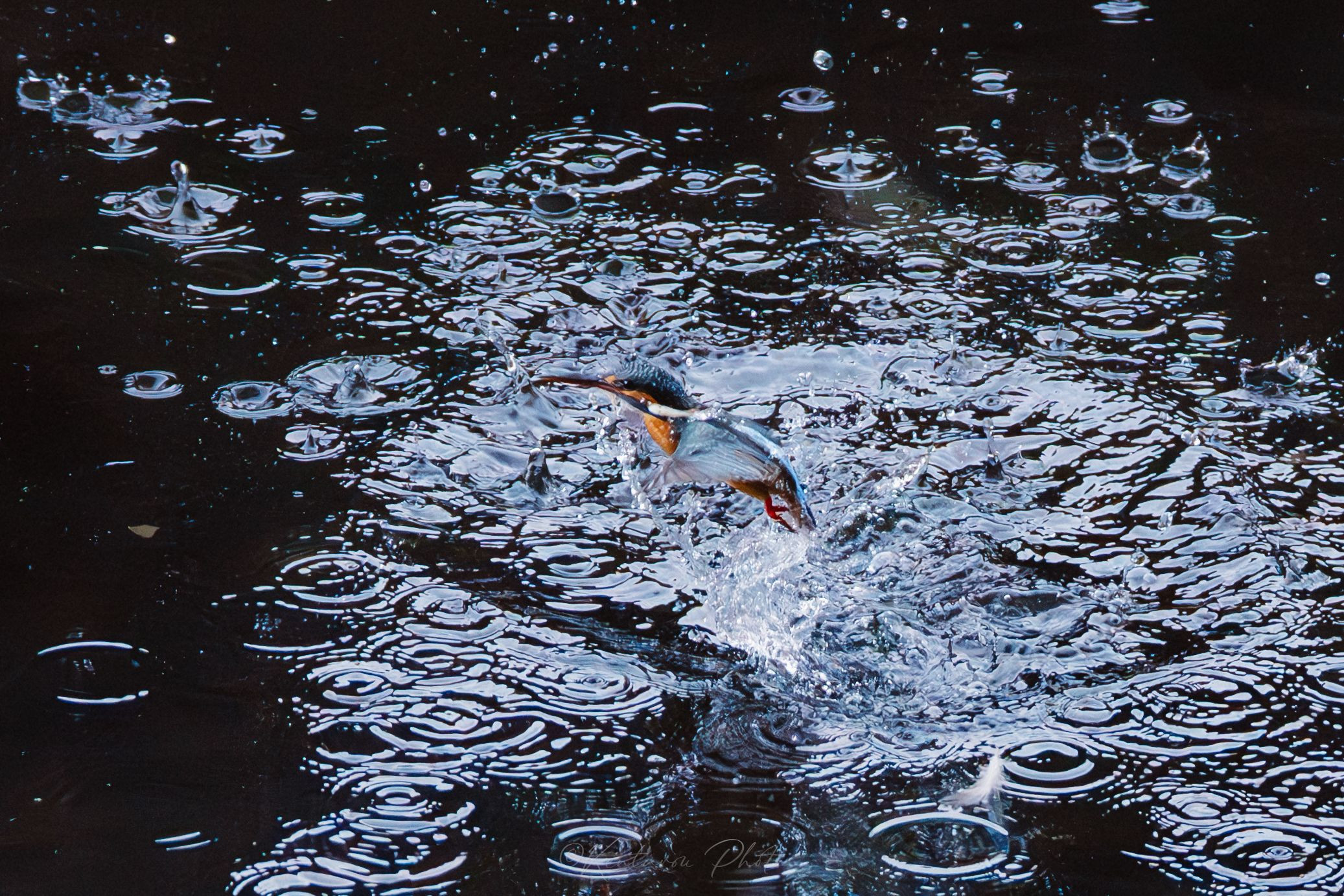 水中から戻るカワセミ