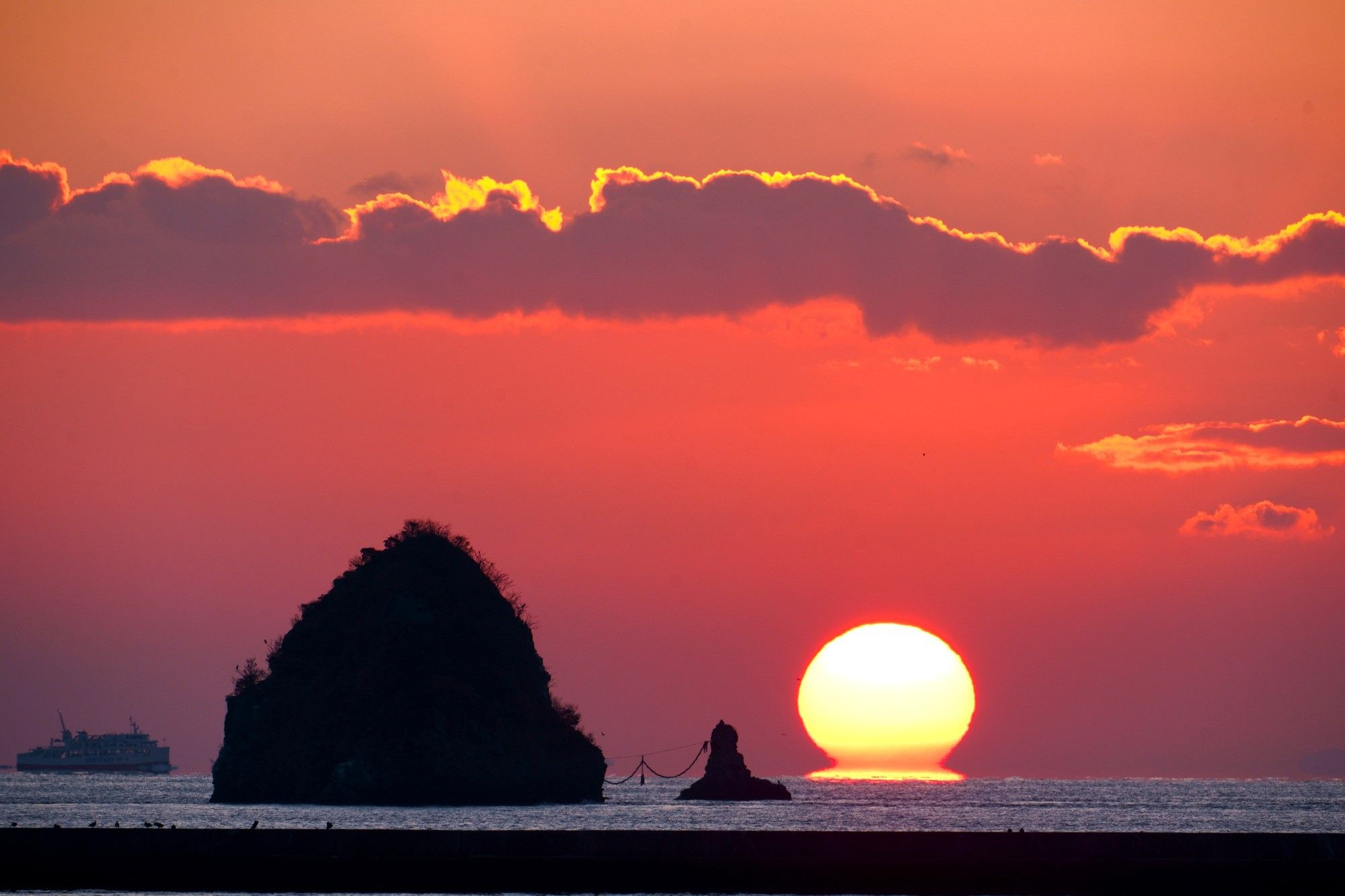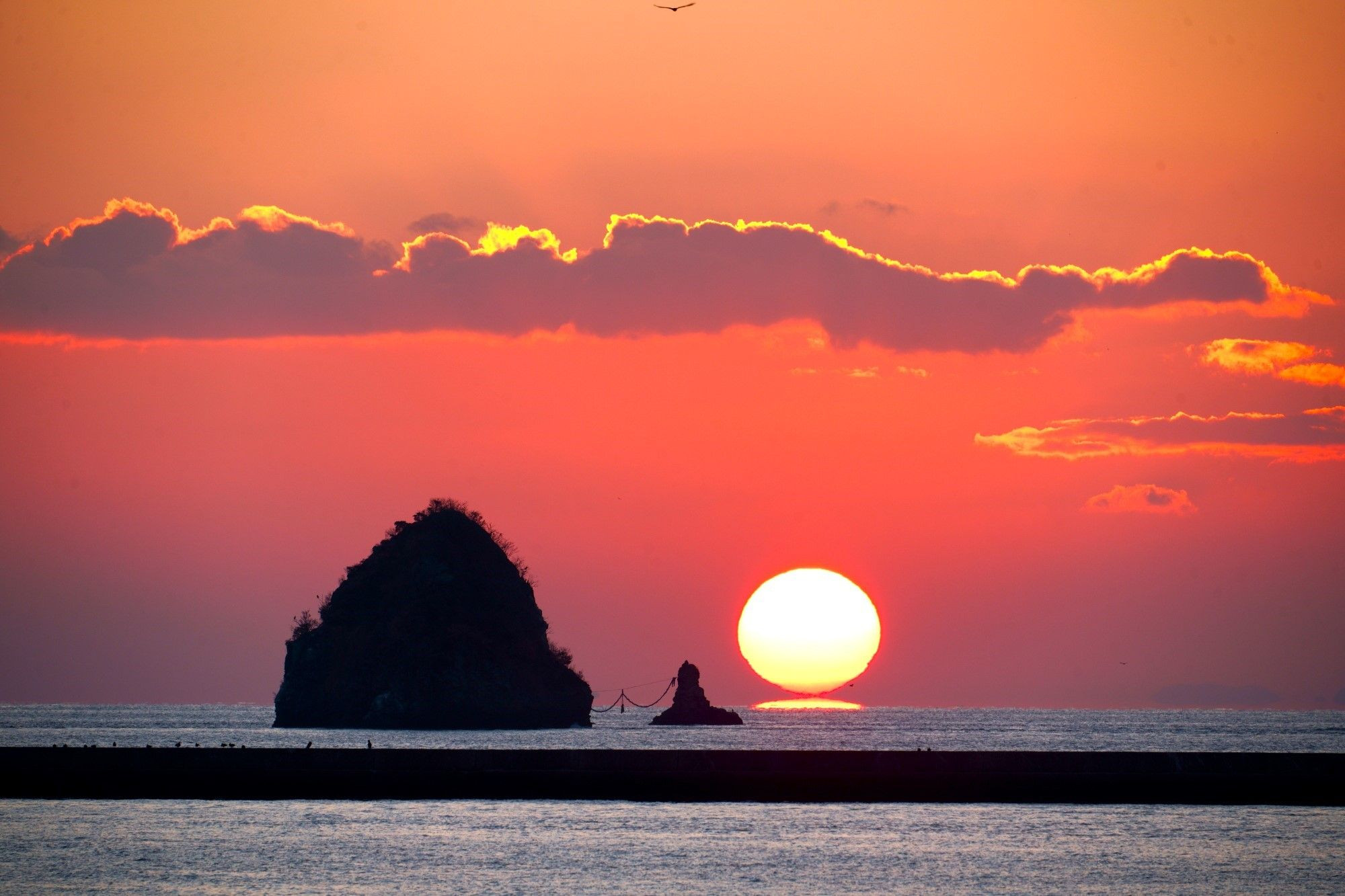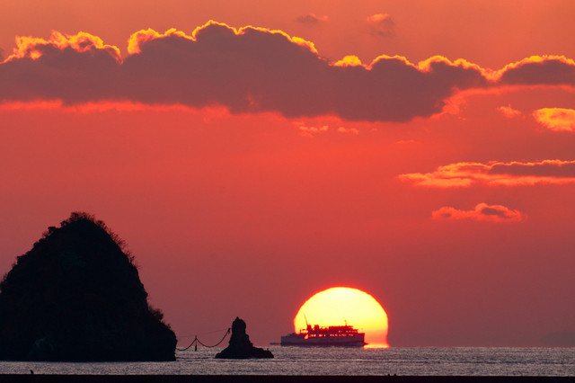 北条市鹿島沖に沈むダルマ夕陽