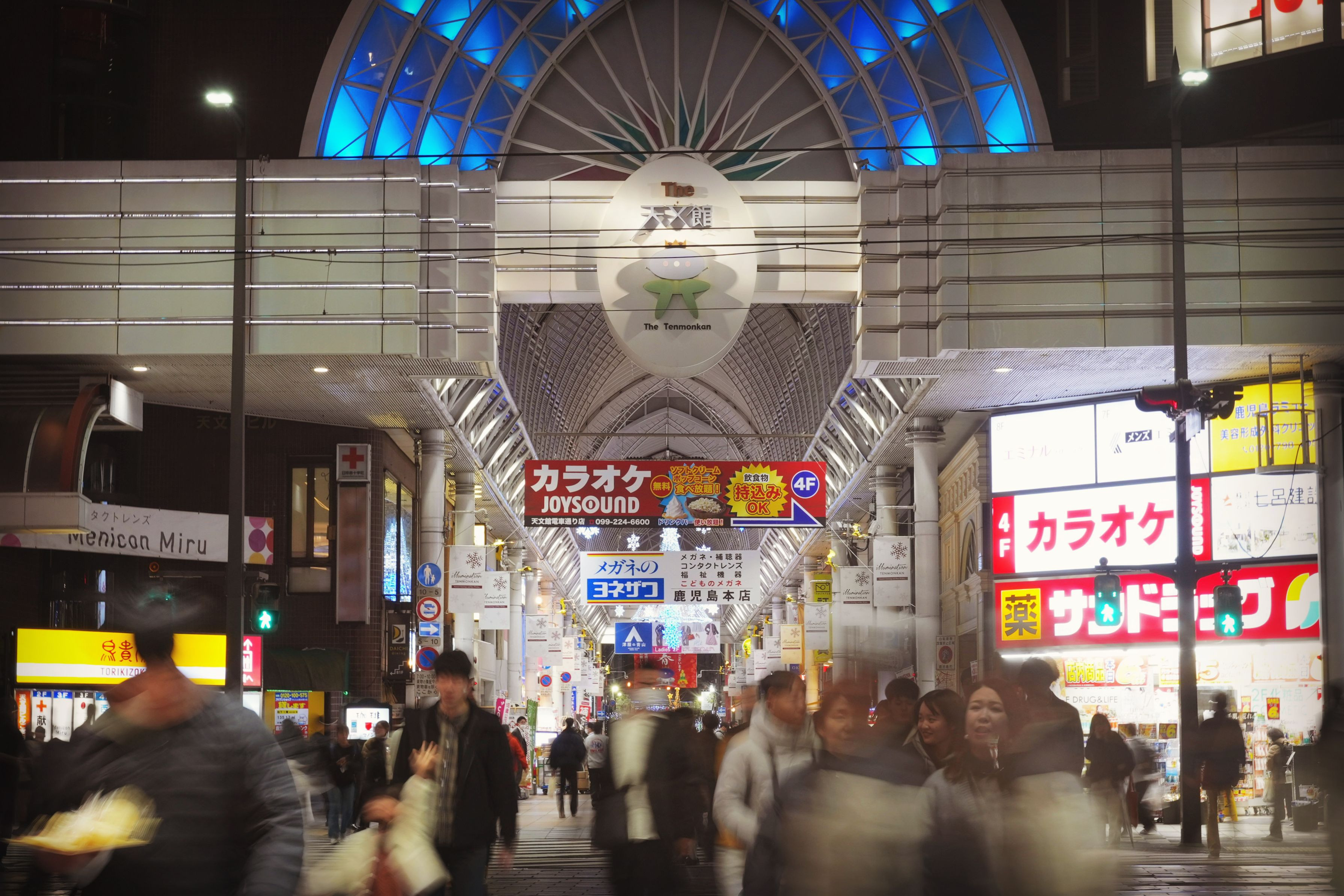 鹿児島市の繁華街、天文館のアーケードです。結構シャッタースピード下げて手持ち撮影しましたが、かなり手ぶれ補正が効いてて感動しました。