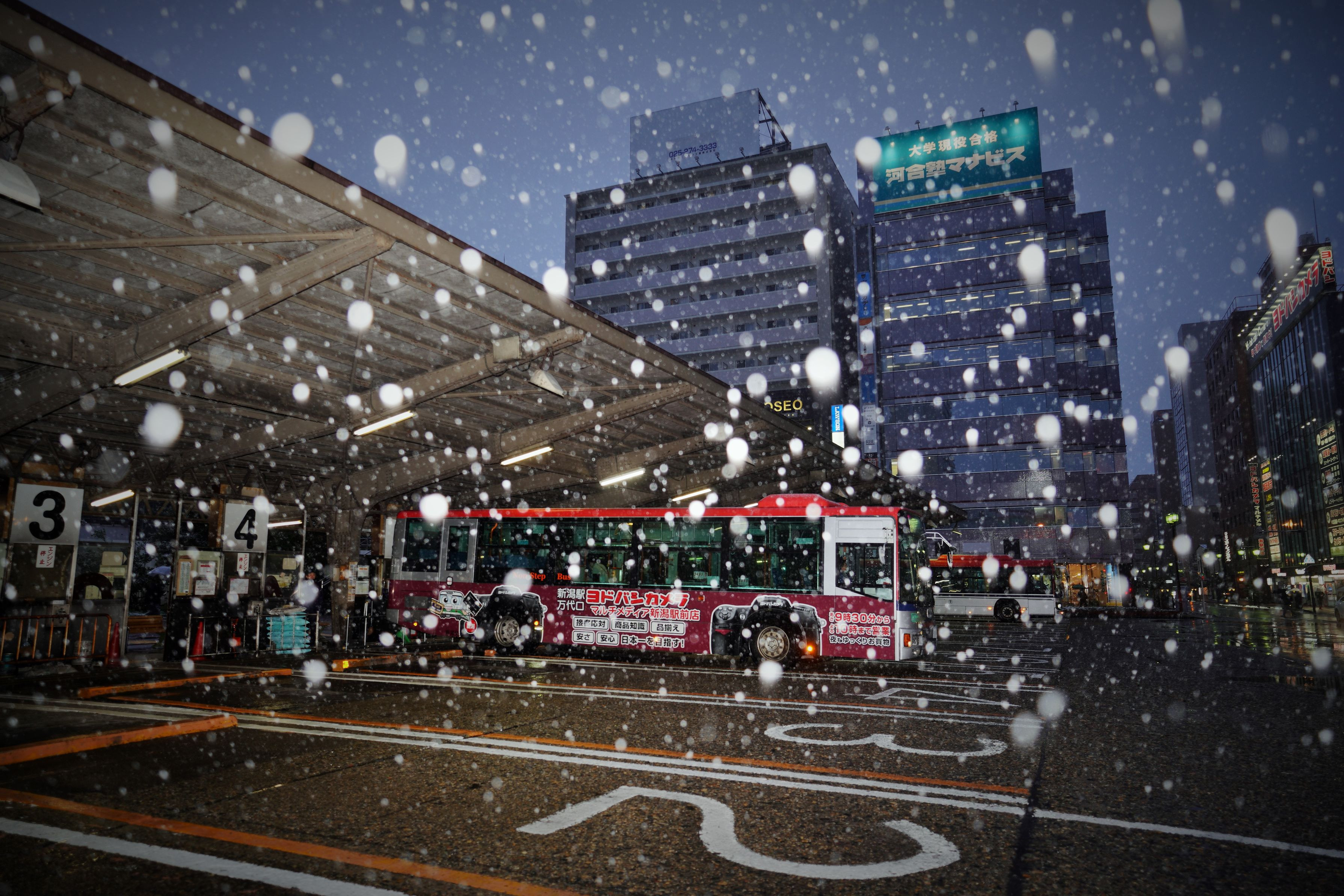 製品情報>My Sony>αcafe>雪降る新潟駅バス停車場(udaudaさん)