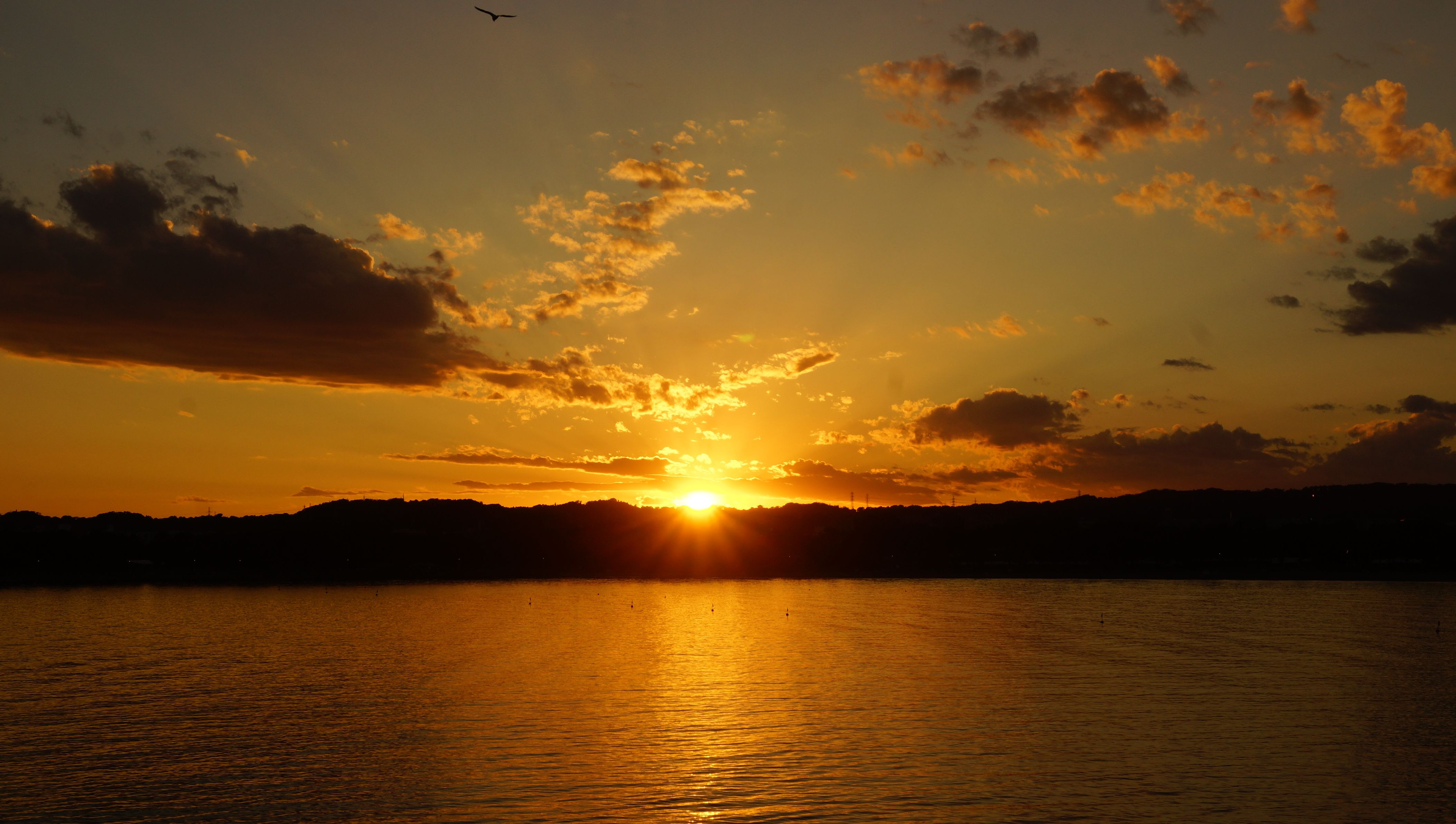 まだ少し残る青空を太陽の夕色が染めるグラデーション。 たまたま出かけた先で出会わせてくれたその瞬間だけの風景。 あっという間に太陽が沈んでしまうので慌ててカメラを構えました。