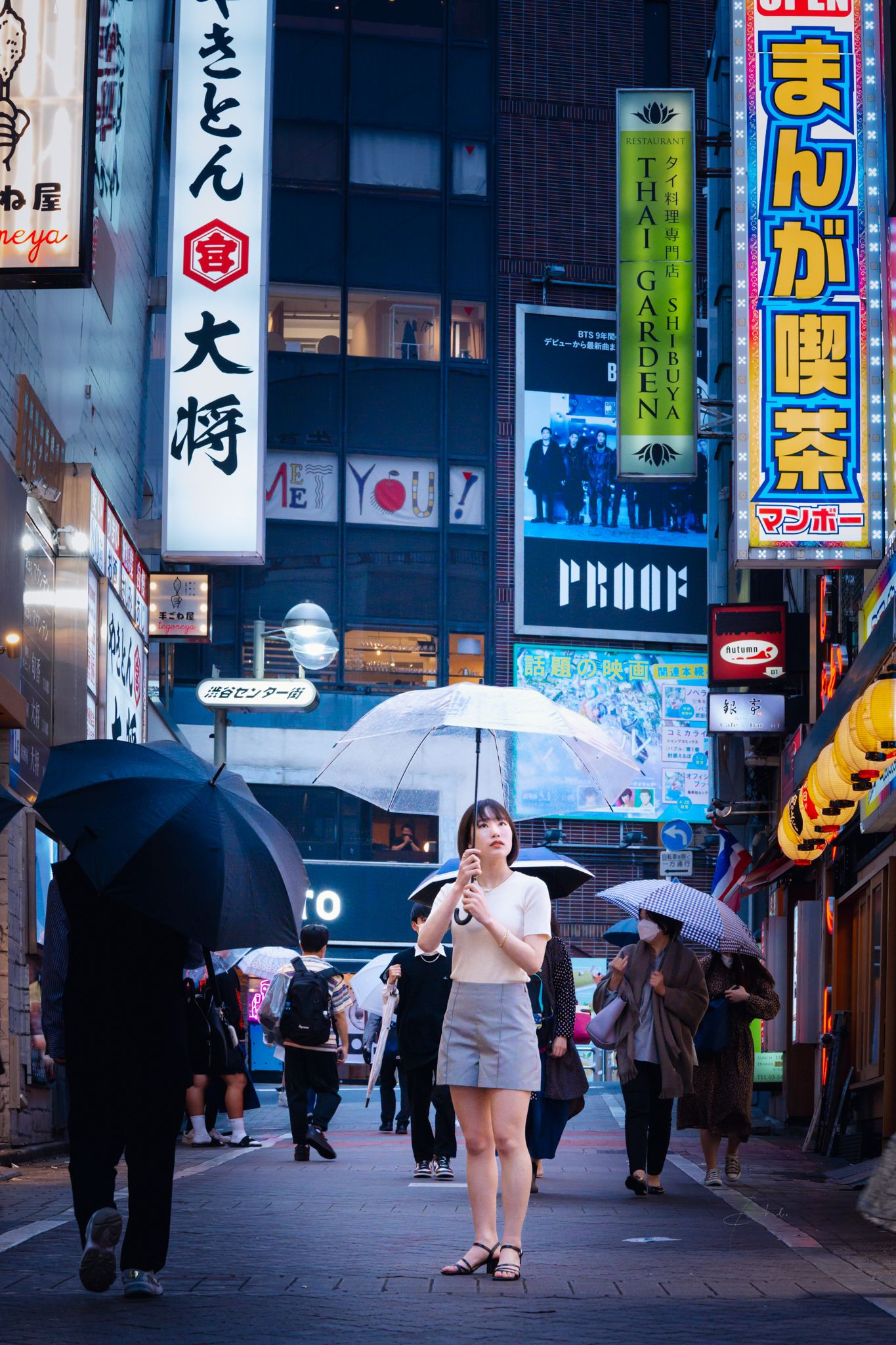 日が沈みかかり、外灯の灯が強くなり 夜の顔が見え始まった、その一つのシーンの切り替え 雨も上がろうとしてる その境目に立ち、ふと見上げ少し高揚する そんなシーンの一枚 α7iv+75㎜ F2.8 シャッタースピード 1/80 絞りf/10 ISO6400