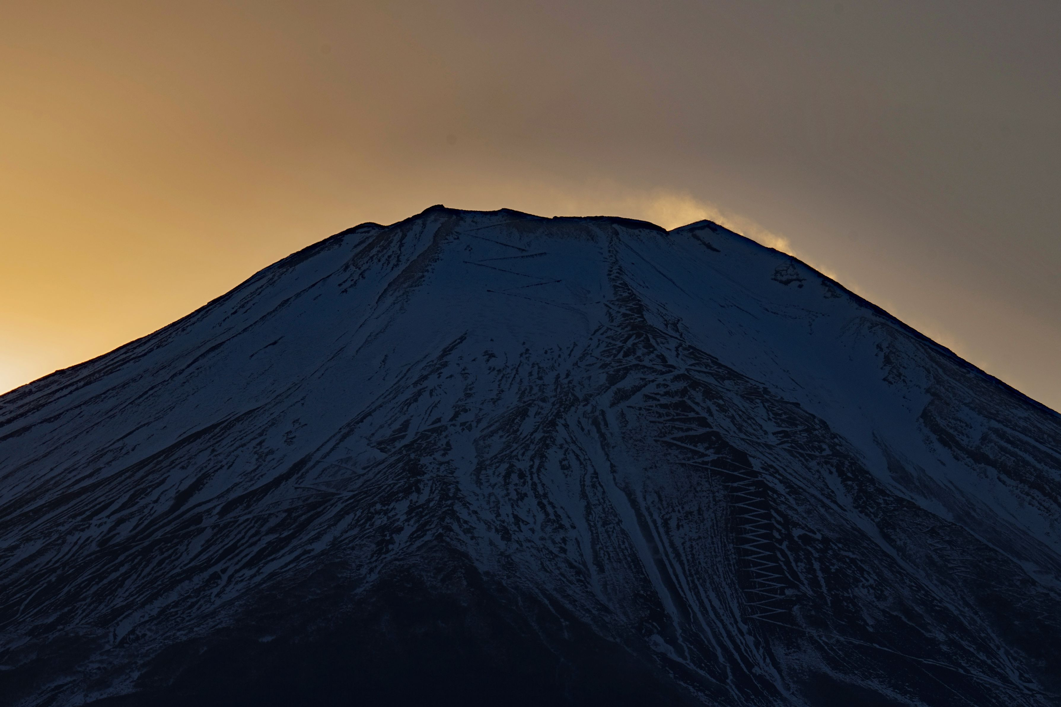 富士山頂付近では激しい地吹雪が見えました。 自然の厳しさを感じられます。