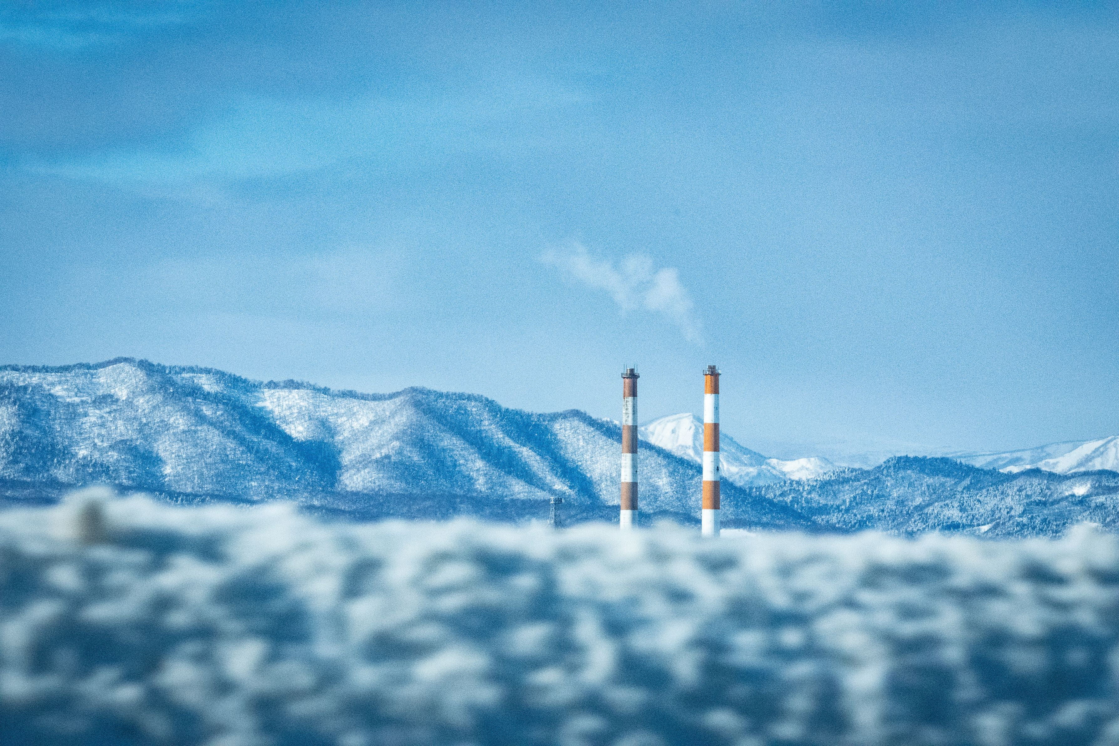 高速道路を走る助手席から。 あっという間に通り過ぎてしまう景色。 特に冬は雪景色の山々も美しく、 やっと撮影できました。