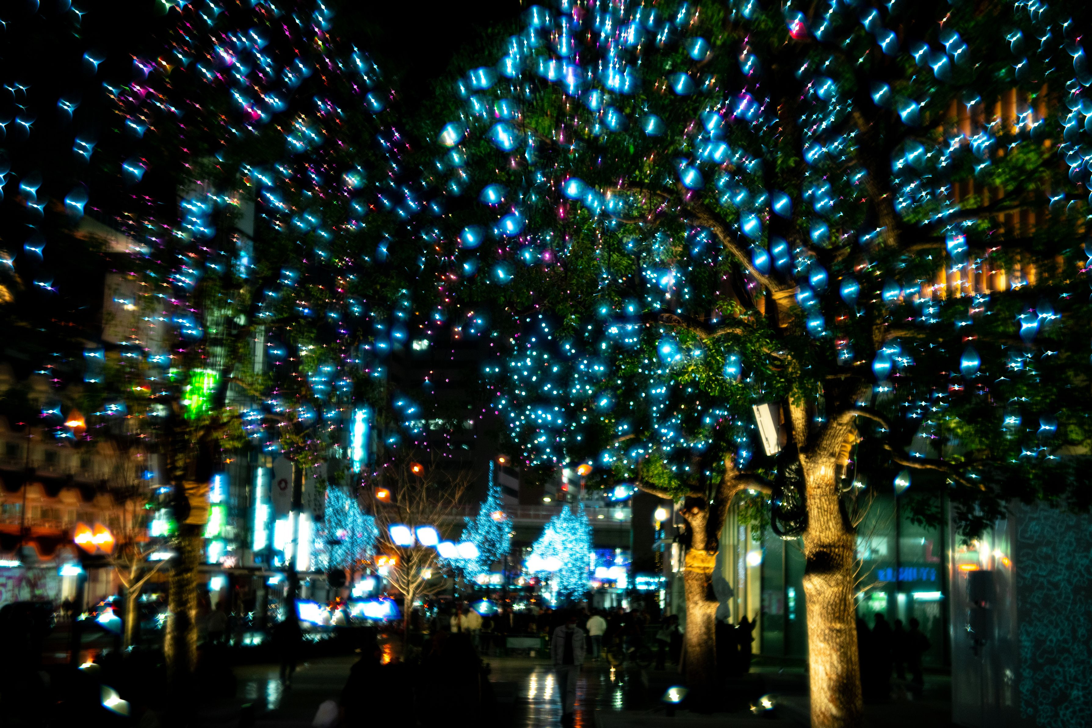 レンズの特性で生まれた灯りの収差がまるで踊っている様でした。