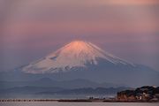 朝焼けに照らされ、ほんのり色付く富士山。 その姿は、とても神秘的。