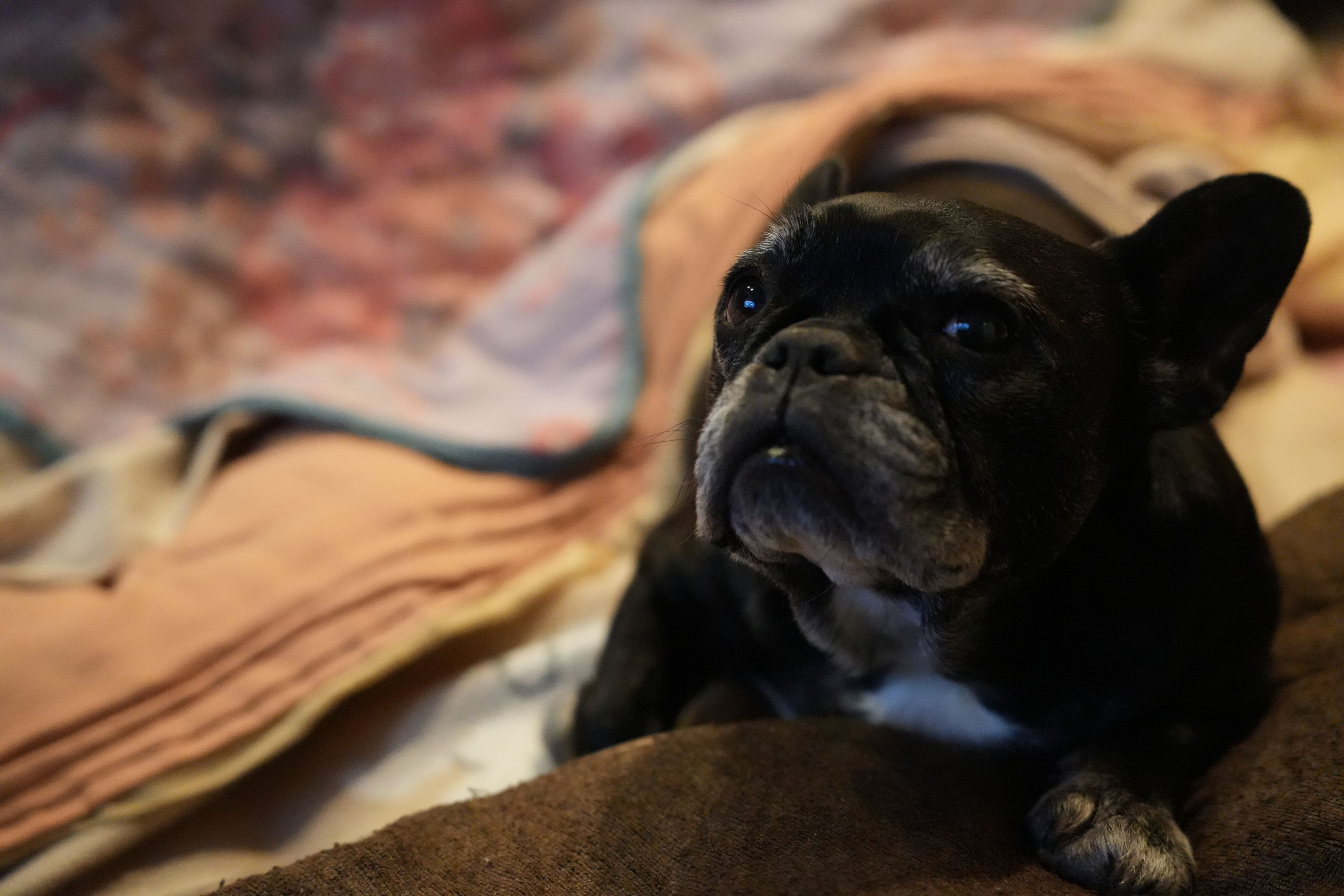 実家で飼っているフレンチブルドッグのあんずちゃん(♀:9歳)です。 家の中のこたつでみんなが休んでいると,それに混じって一緒に暖をとります。 彼女の特等席はいつも決まって,他の家族を押し退けてテレビの真ん前にいることが多いです。