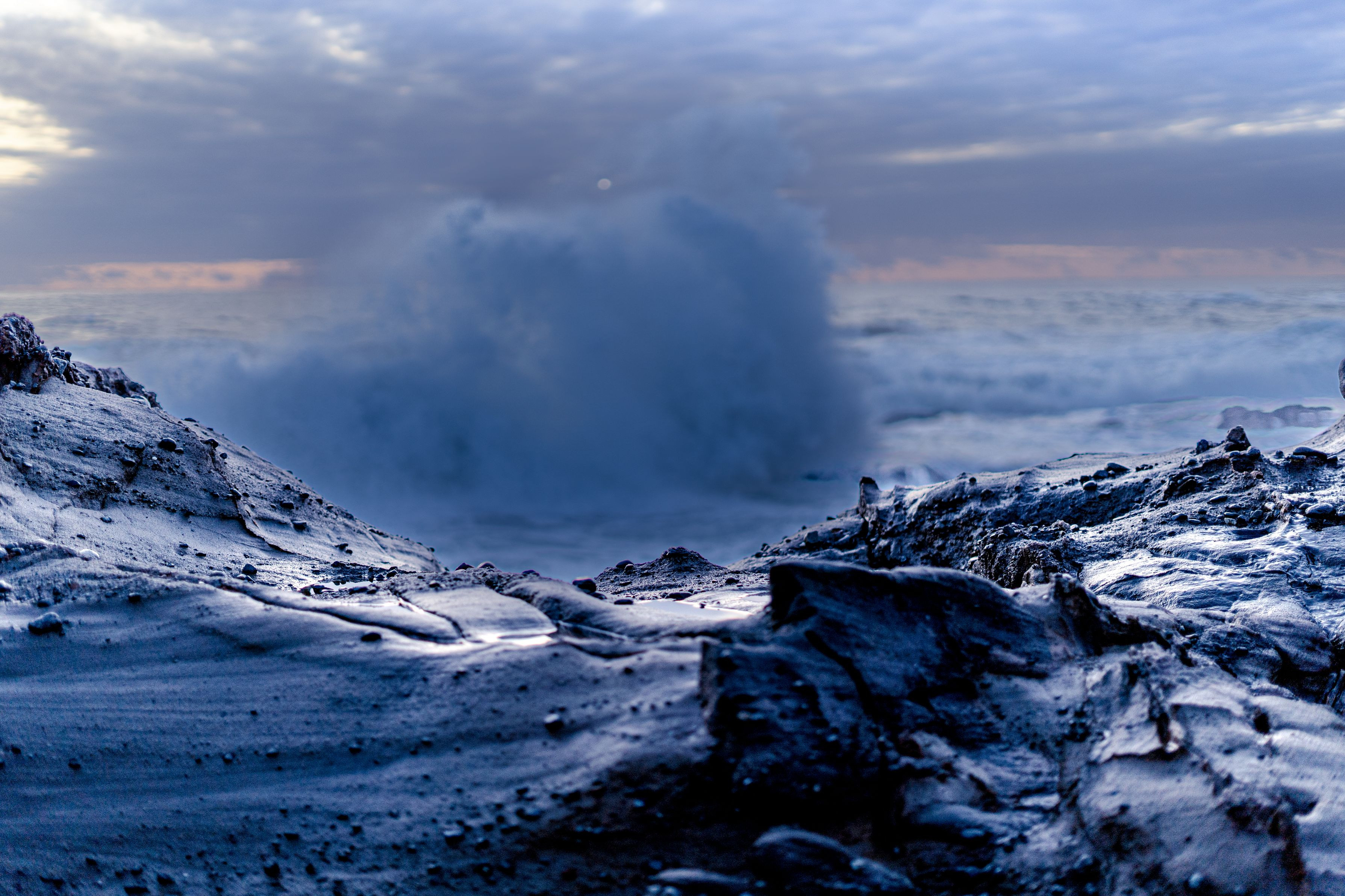 荒れ狂う波が動、どんなに波がぶつかっても岩はじっとしている止 動止を写真で表現するのは難しい。写真は止まって写るから。