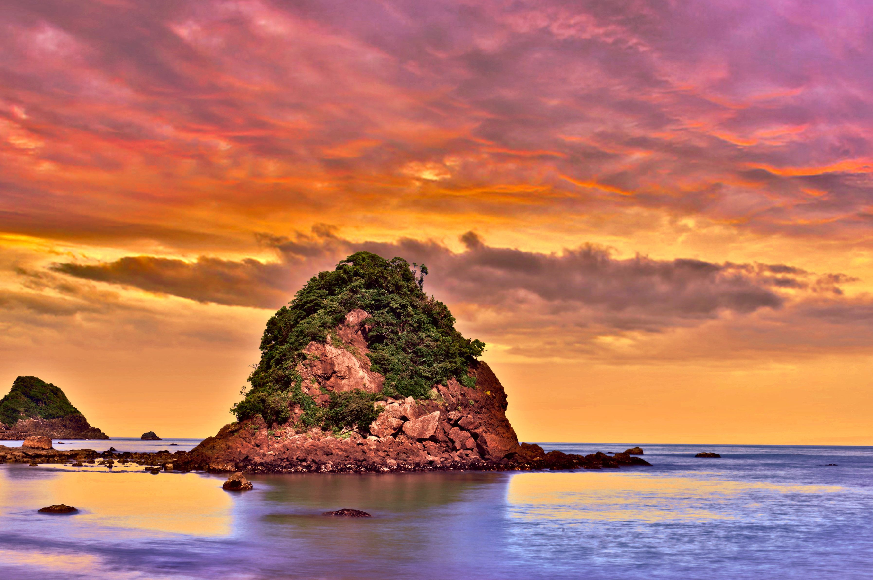 今年の冬は暖かいと言われて、 寒風の海岸線からの夕焼けも暖かそうな