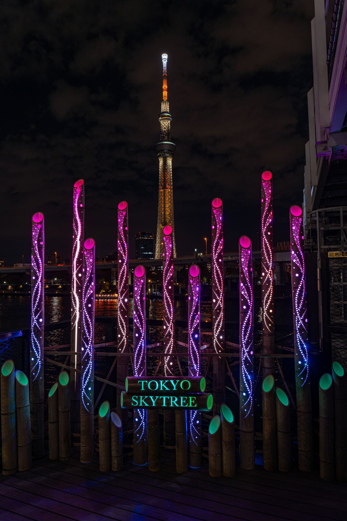 先日東京に行った時にすみだリバーウォークから東京スカイツリーまで撮り歩きをしました。竹のアートのライトアップとスカイツリーのコラボが綺麗でした。