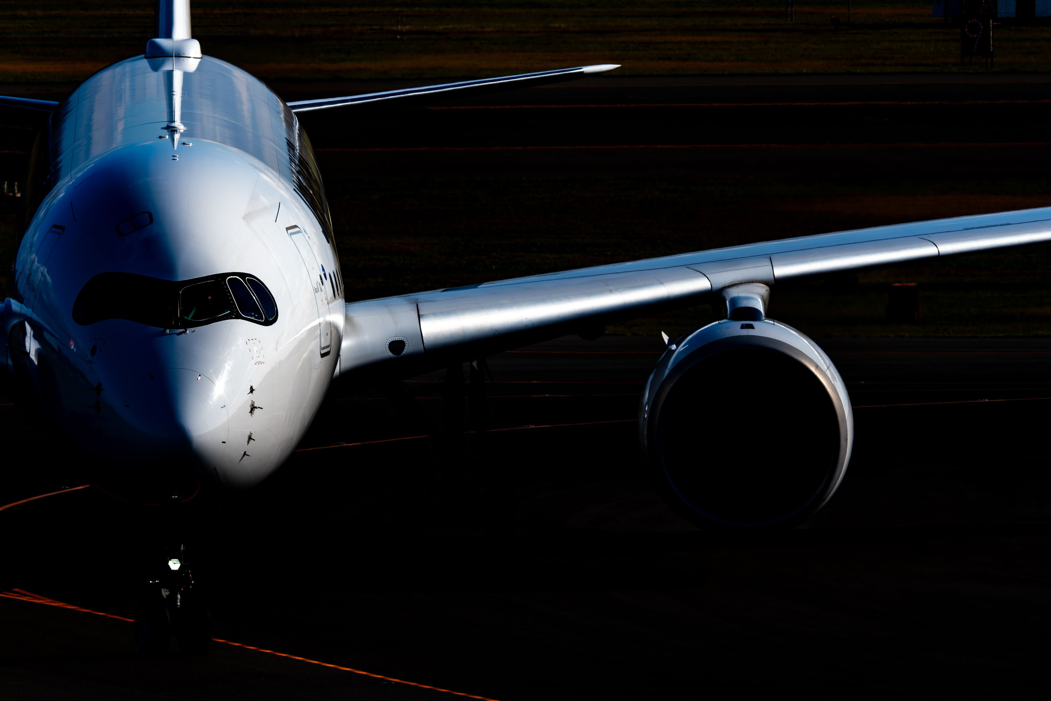 新千歳空港にてちょうど良い陽射しを浴びながらタキシングするA350-900を撮影しました。