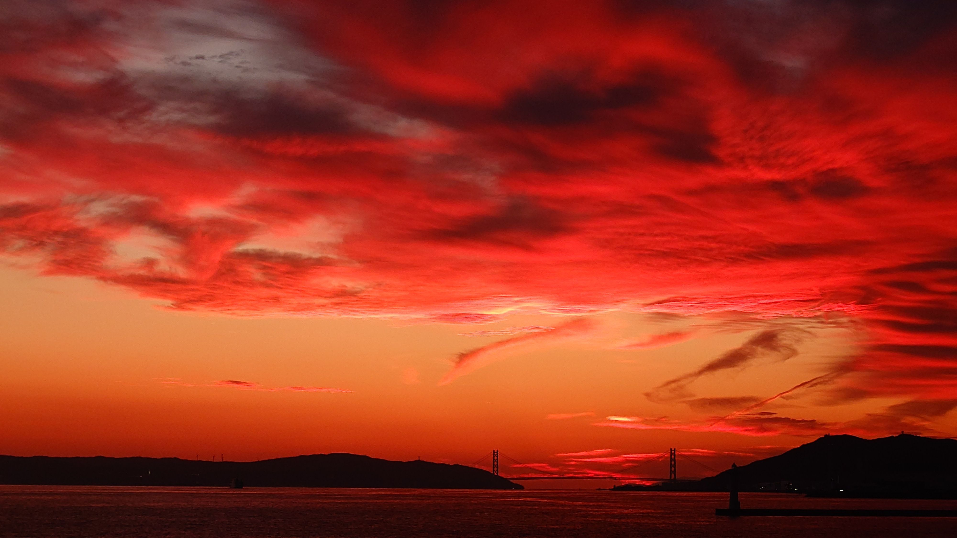 日没後の明石海峡大橋