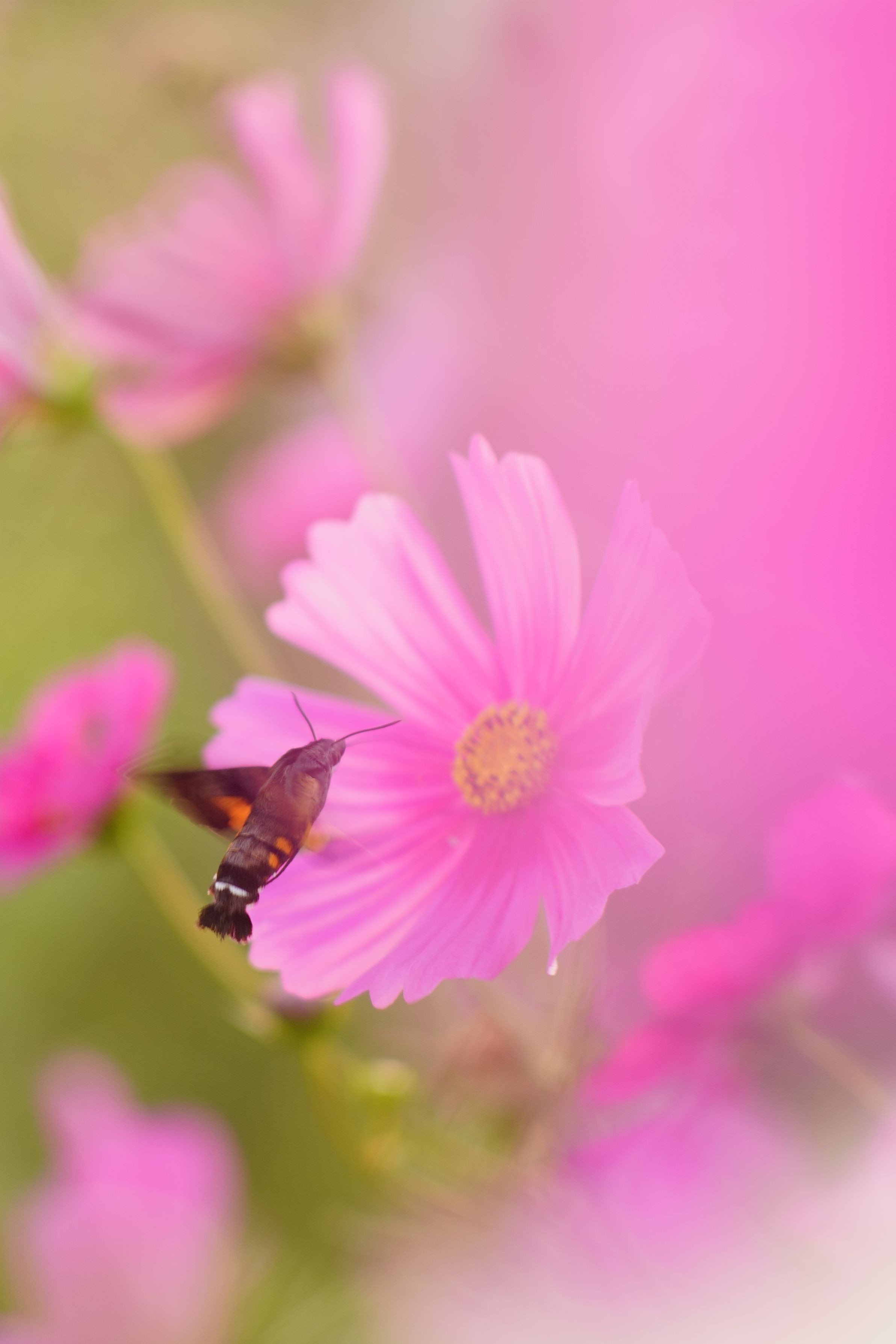 この虫、みんな勘違いして逃げるけどハチでもアブでもないんよね。 蜜吸いの邪魔しても怒って刺されたりしないけど、ついつい逃げちゃうよね。