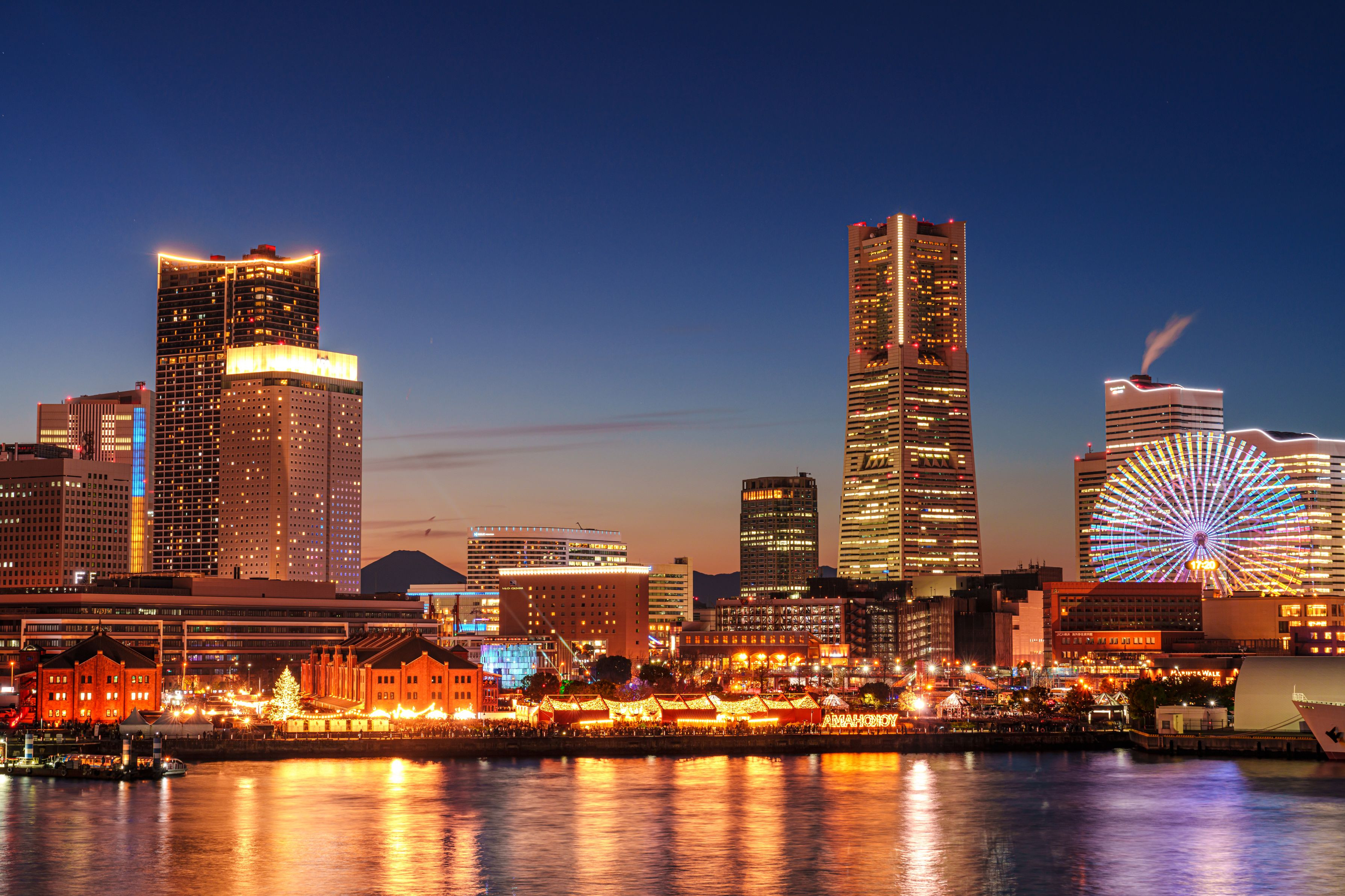製品情報>My Sony>αcafe>夕暮れのみなとみらいとビルの間の富士山(moyuさん)