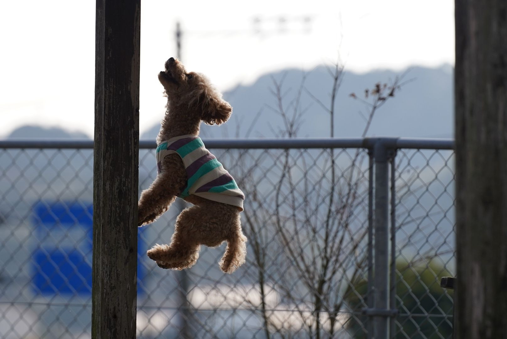 ドッグランで友達ワンコを撮影しました 梁に置いてあるボールが欲しくて、ジャンプを繰り返していました。
