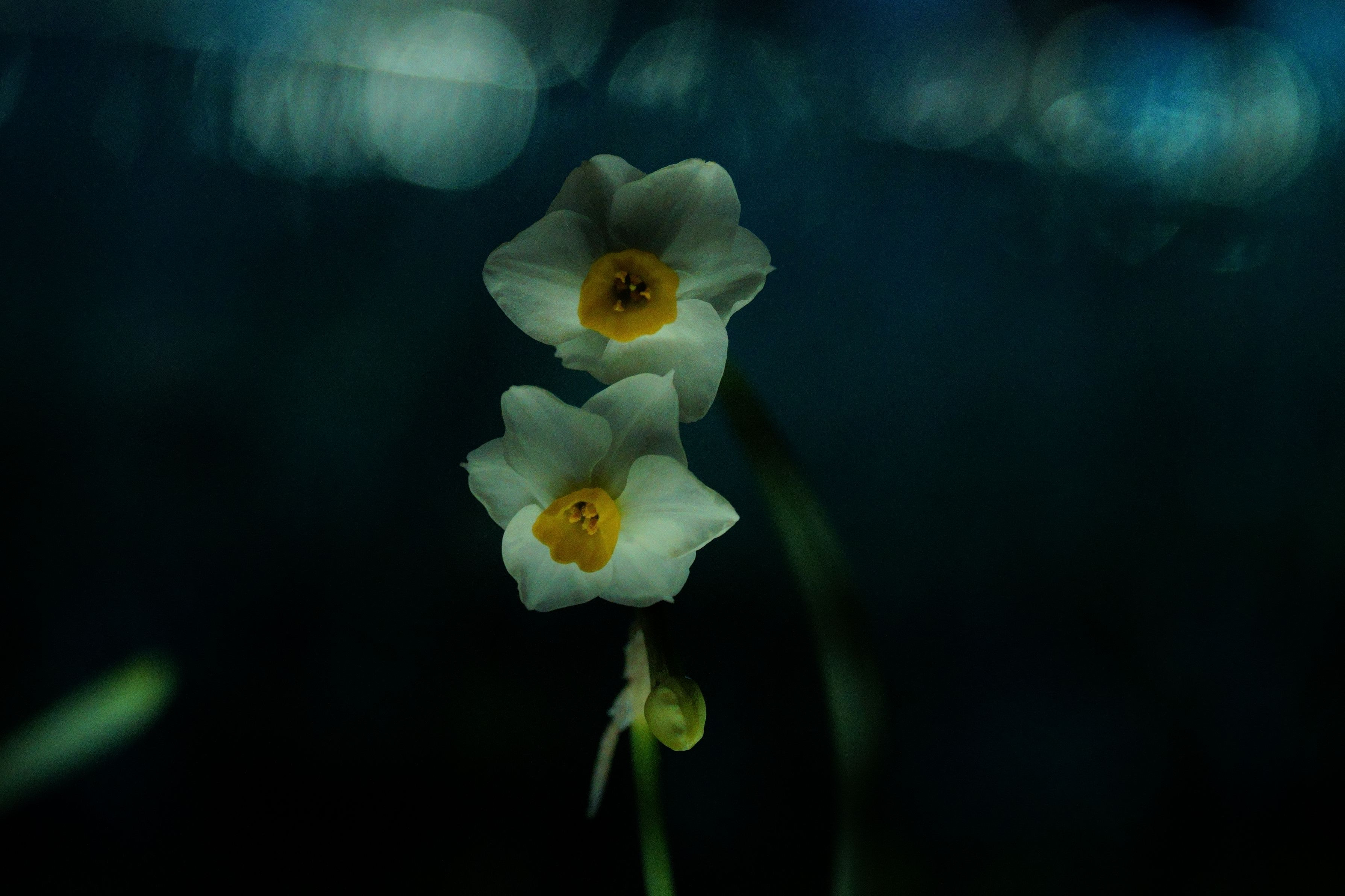 スイセンは別名『雪中花』ともいうそうです。 冷たい風の中、青い光に照らされた花は静かに妖しく揺れていました。 夢に誘うように。