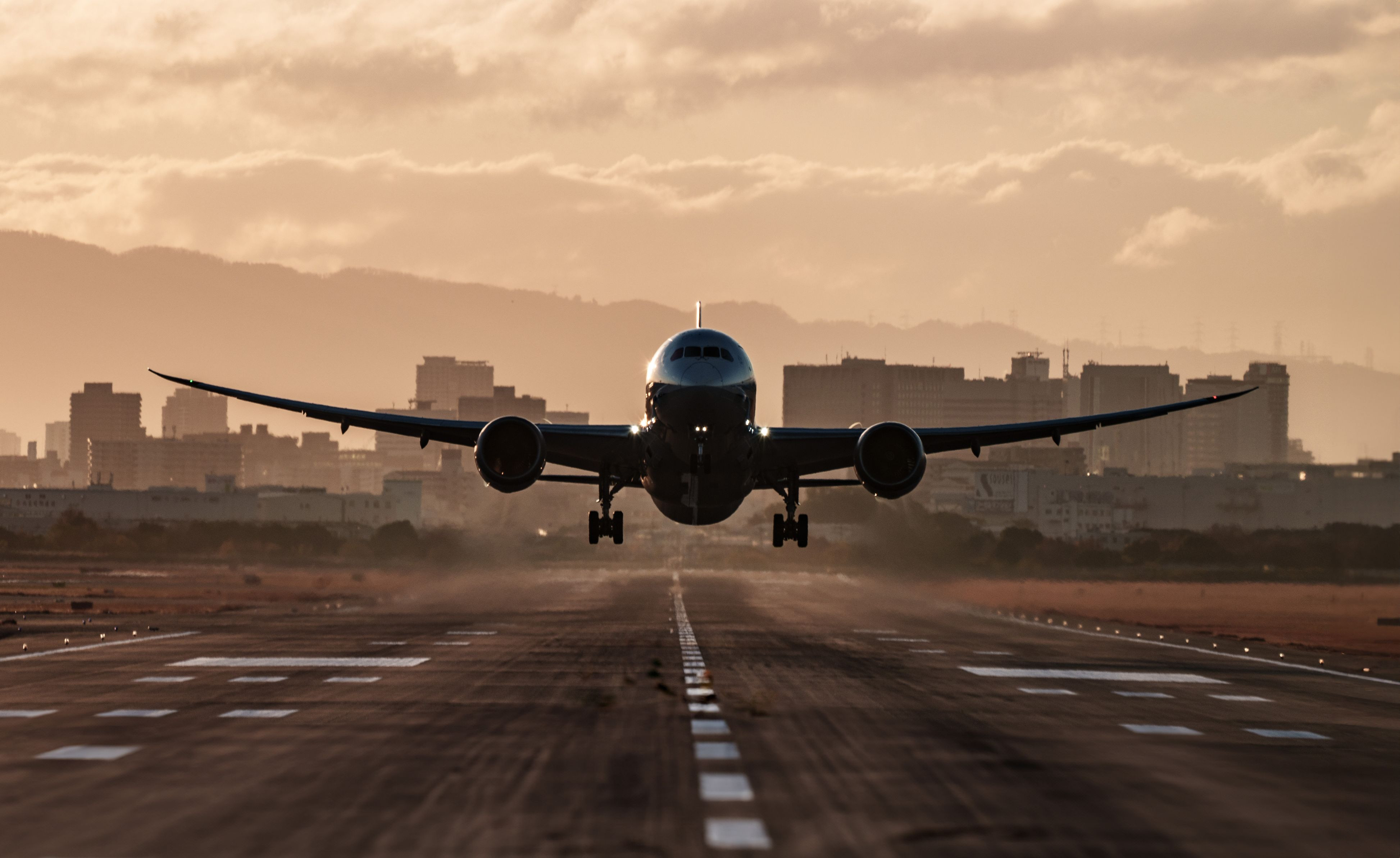 大阪空港の朝 離陸直後の旅客機を撮影しました。金属の塊感を出すことに苦慮しました。