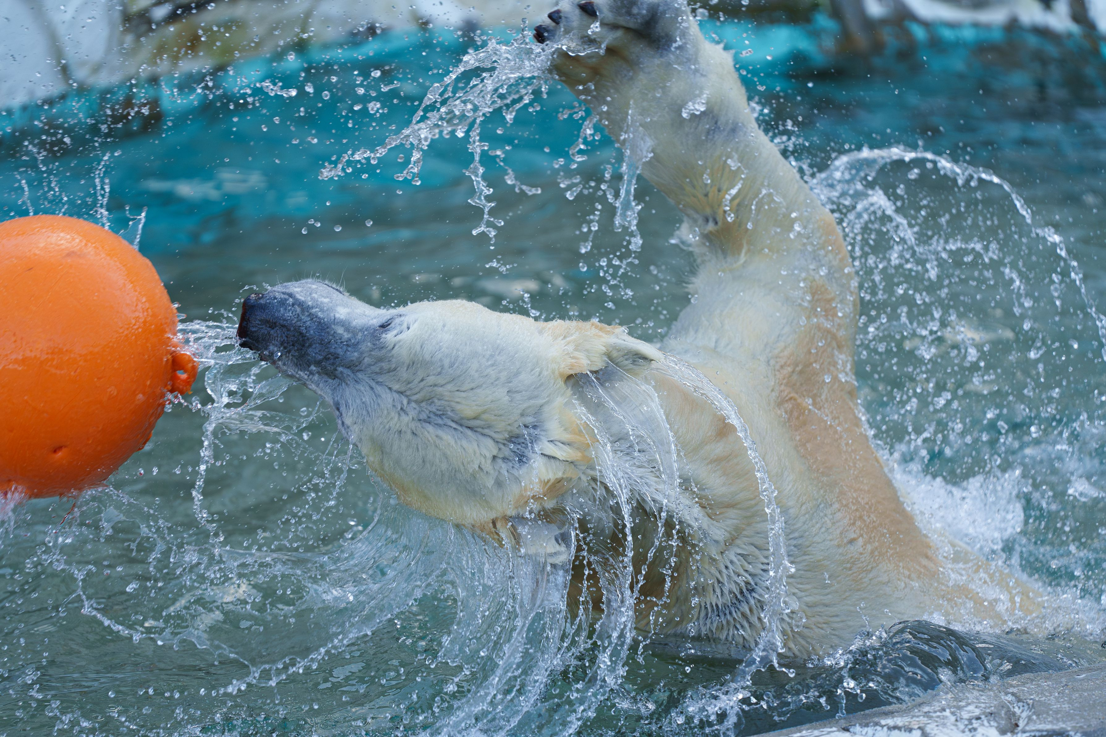 寒空の下、東山動植物園に撮影に行ったところに人間の数倍もある体重であると感じさせる勢いを遊びながら表現していました。