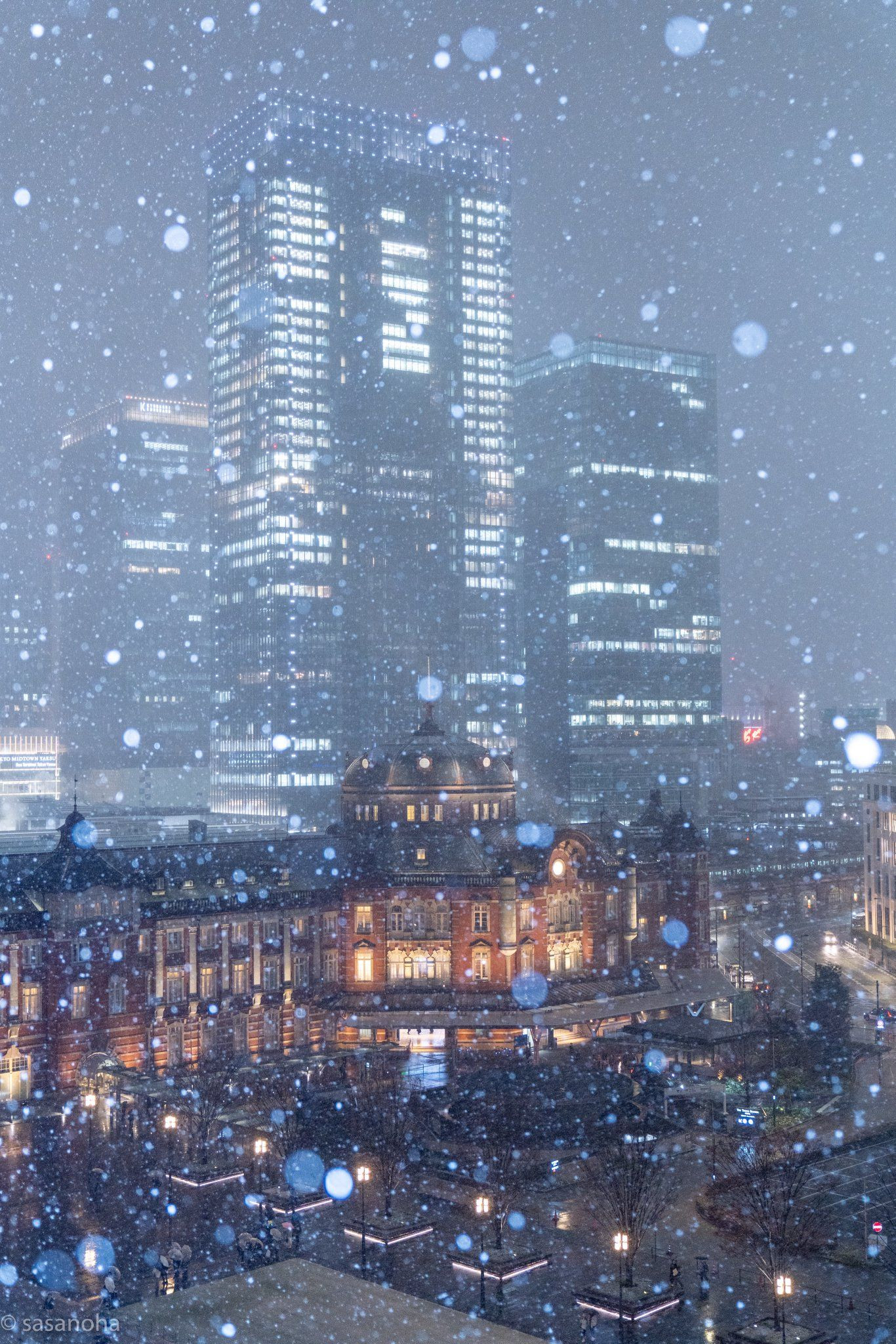 先日の雪降る東京駅を撮りました。