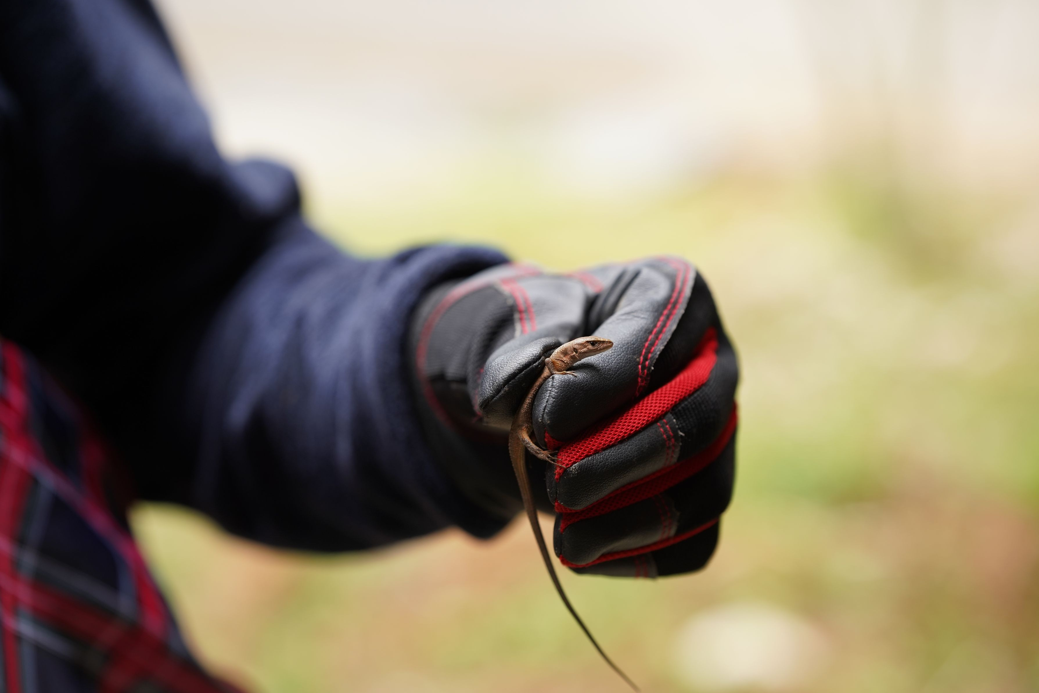 山でトカゲ?を捕まえた妻。