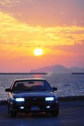 主役が夕陽をバックに去り行く映画のラストシーンをイメージしてみました。 「旧いファミリーカーをカッコよく撮る」ことをテーマにしています。