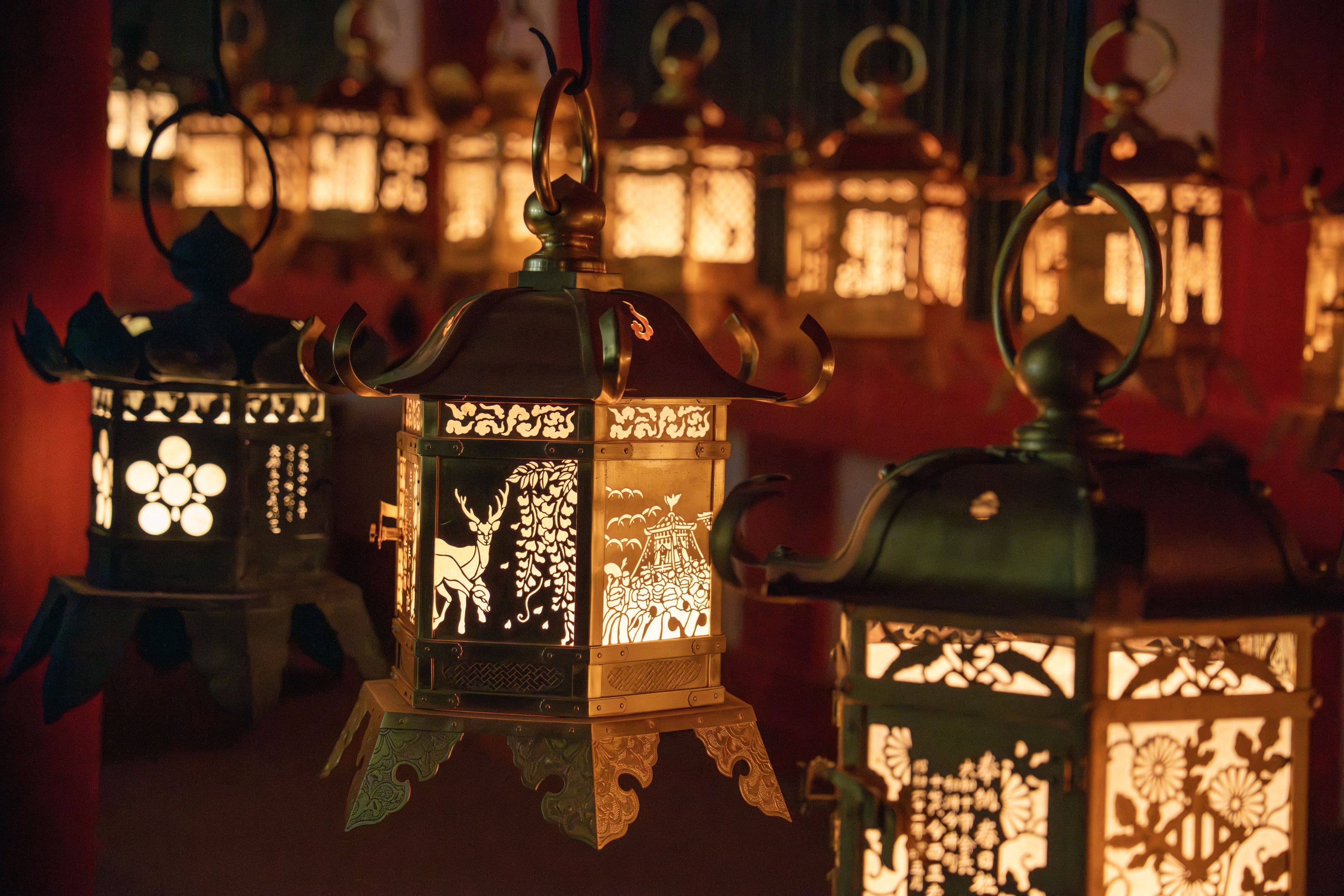 奈良で開催された瑠璃絵のイベントで春日大社の夜間拝観がありました。その時の写真で丁度鹿さんが夜景を見に来たようでした。