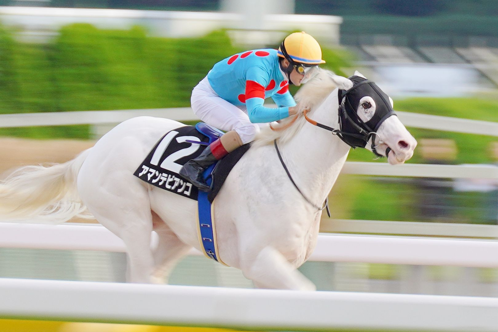 競馬流し撮り@東京競馬場 3戦2勝。若い白毛アイドル候補馬が地方交流重賞に挑戦。 白毛馬の中では凛々しい目つきのアマンテビアンコ氏。 白毛は華やかで観客みんなが写真撮るのに盛り上がって楽しい。