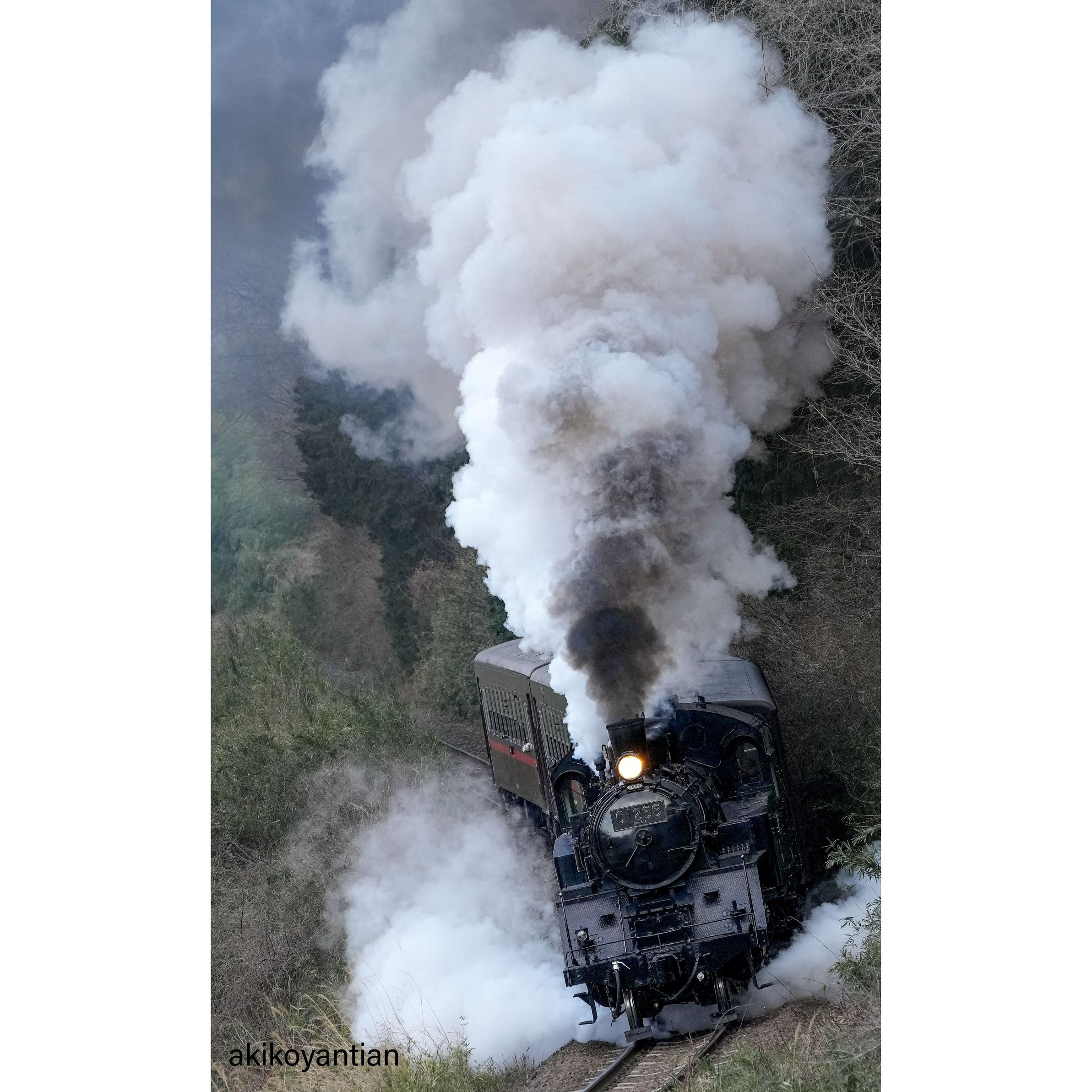 シュシュシュシュ坂を上ってくるSLにドキドキ😮心奪われました。煙の残り香も良いなぁ〜有難うSL君✨(=^・^=)✨