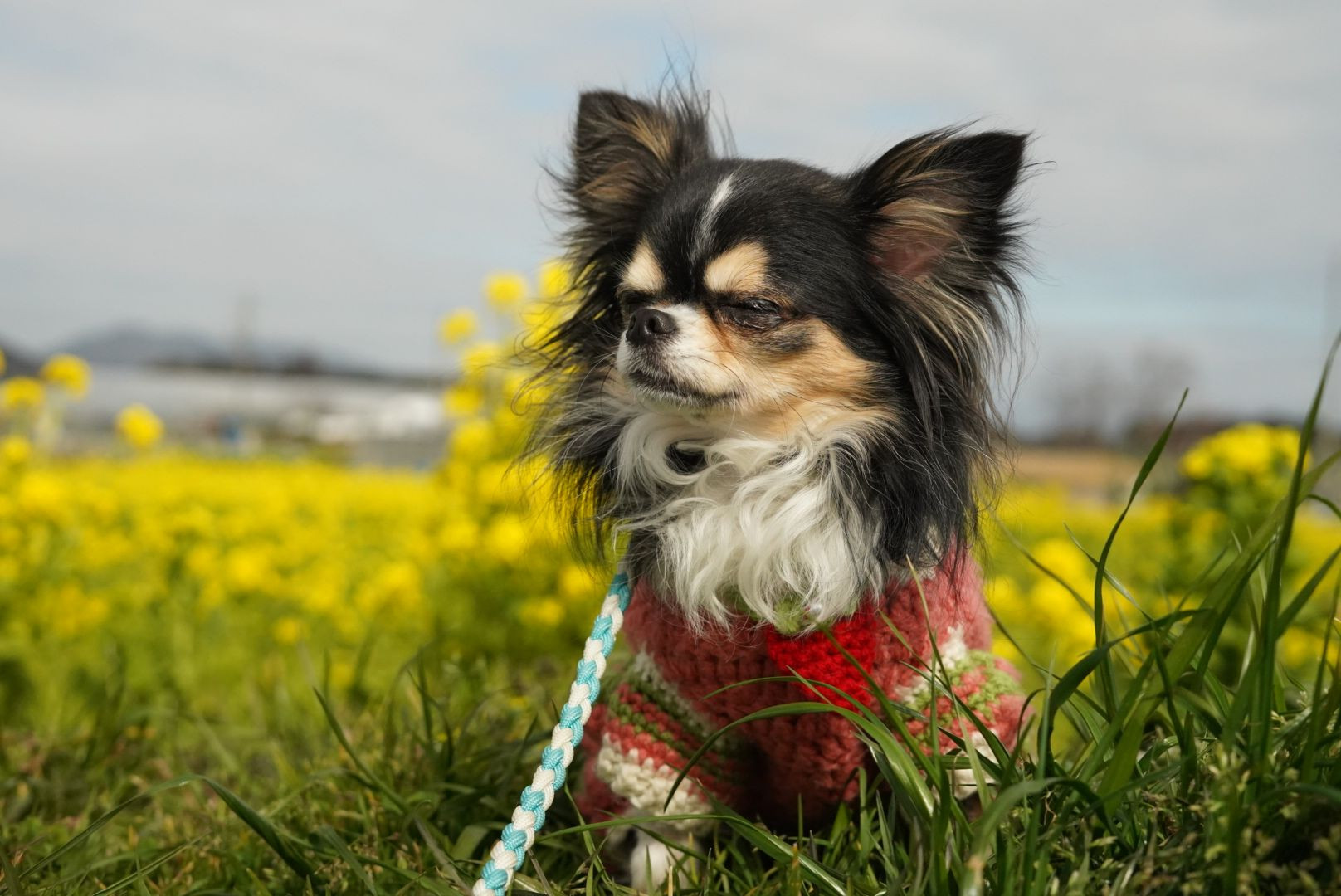 菜の花畑で撮影。菜の花が意外に背丈があるんでわんこと両方ともはりにくかった初心者です