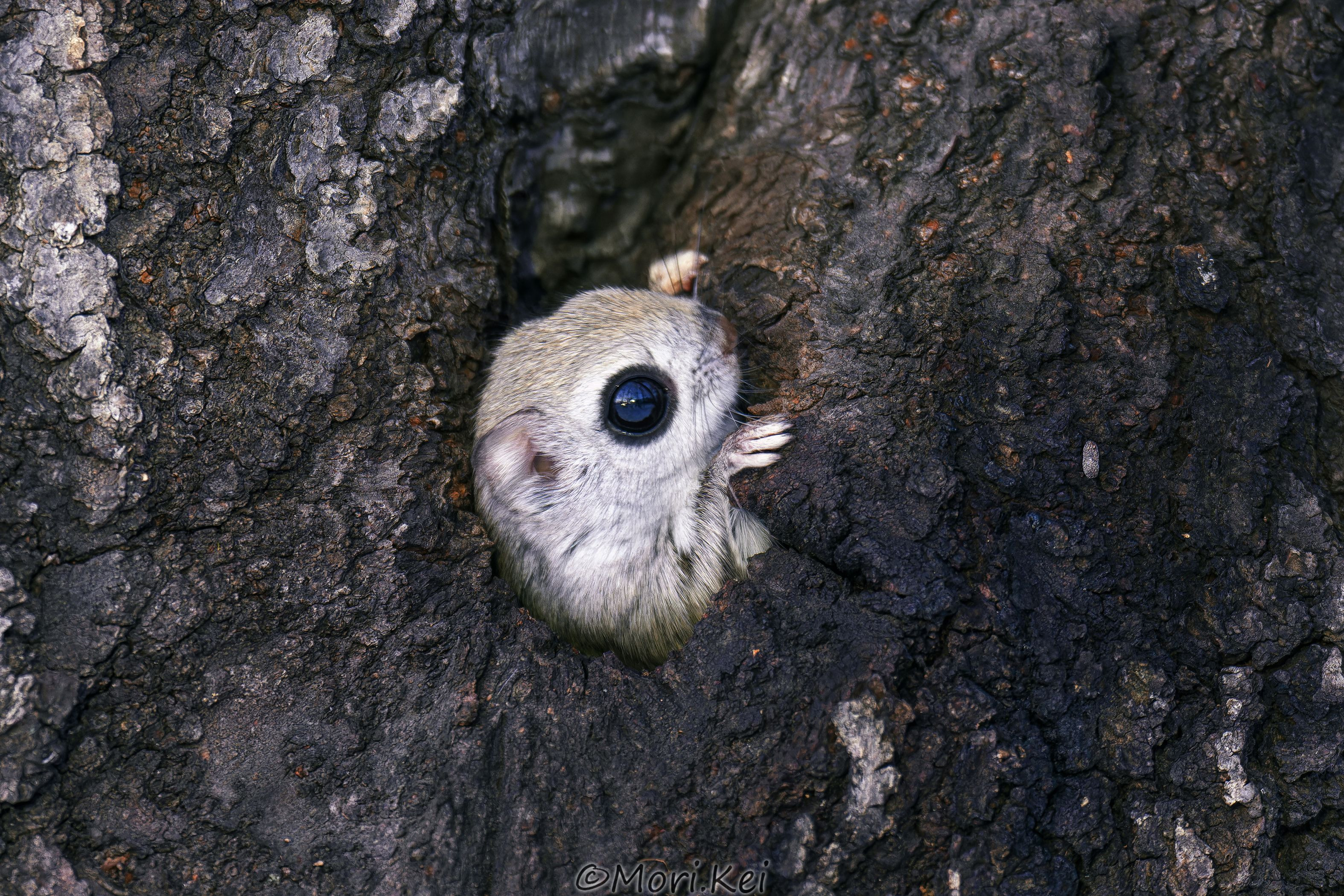 巣穴から出てきたエゾモモンガ ちょこんと添えてる手が可愛いです