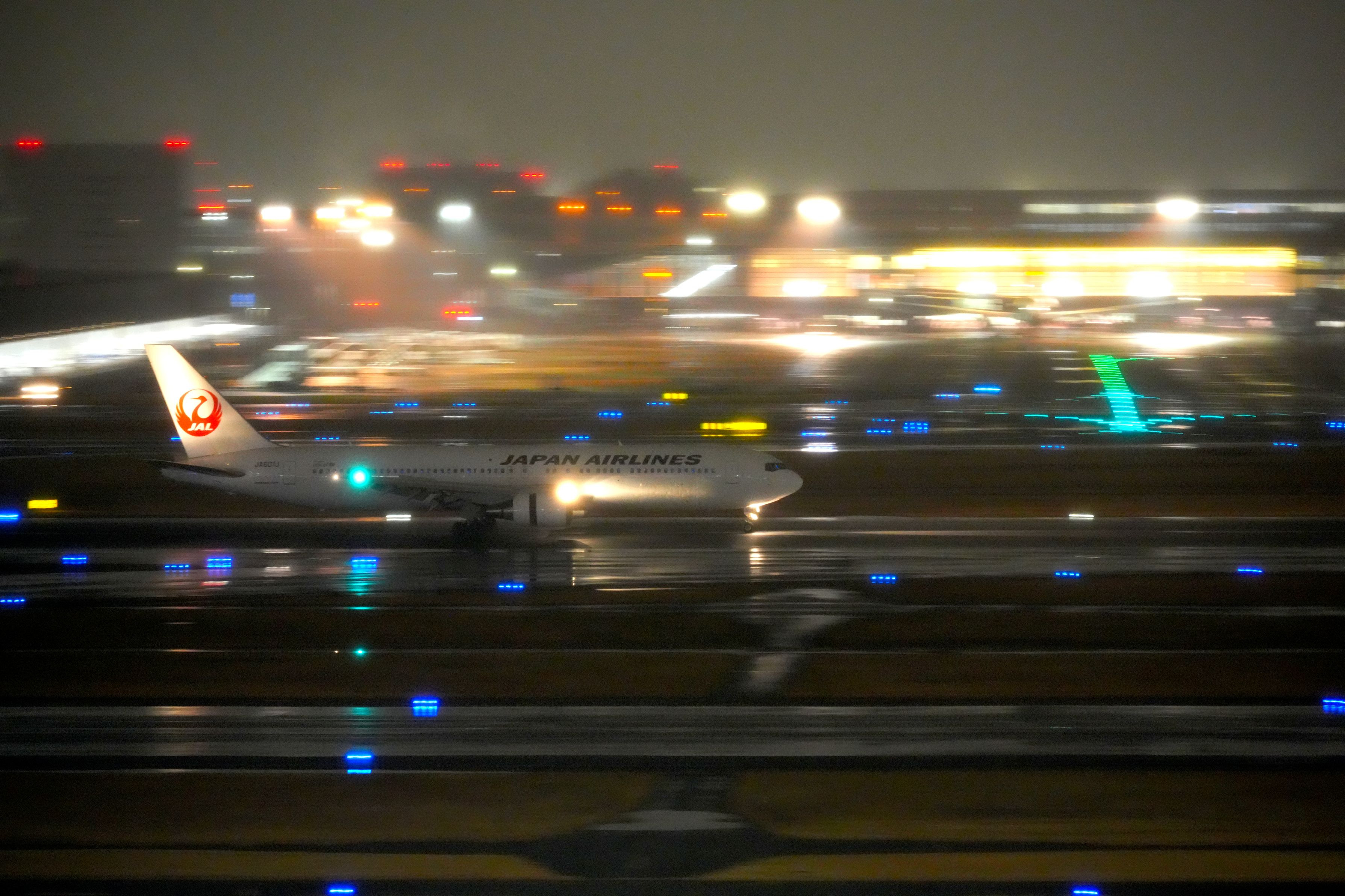 雨、雪、横風なのに2機共停止位置より手前で止まる