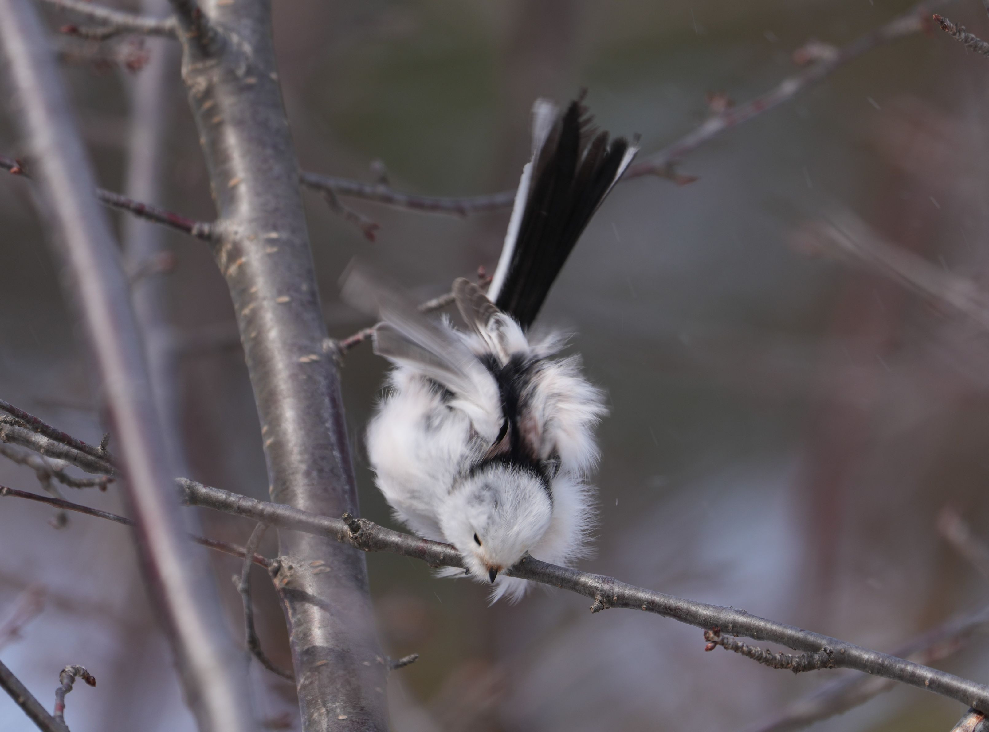 昨日投稿させて頂いたシマエナガちゃんの写真が評判良かったので、もう1枚数投稿します。 あまりにも凄い強風なので、枝から落ちないように前傾姿勢を保っている様子です。 大倉山スキージャンプでジャンパーが離陸寸前のような態勢・・・つい、吹き出してしまいました。(ごめんね~)