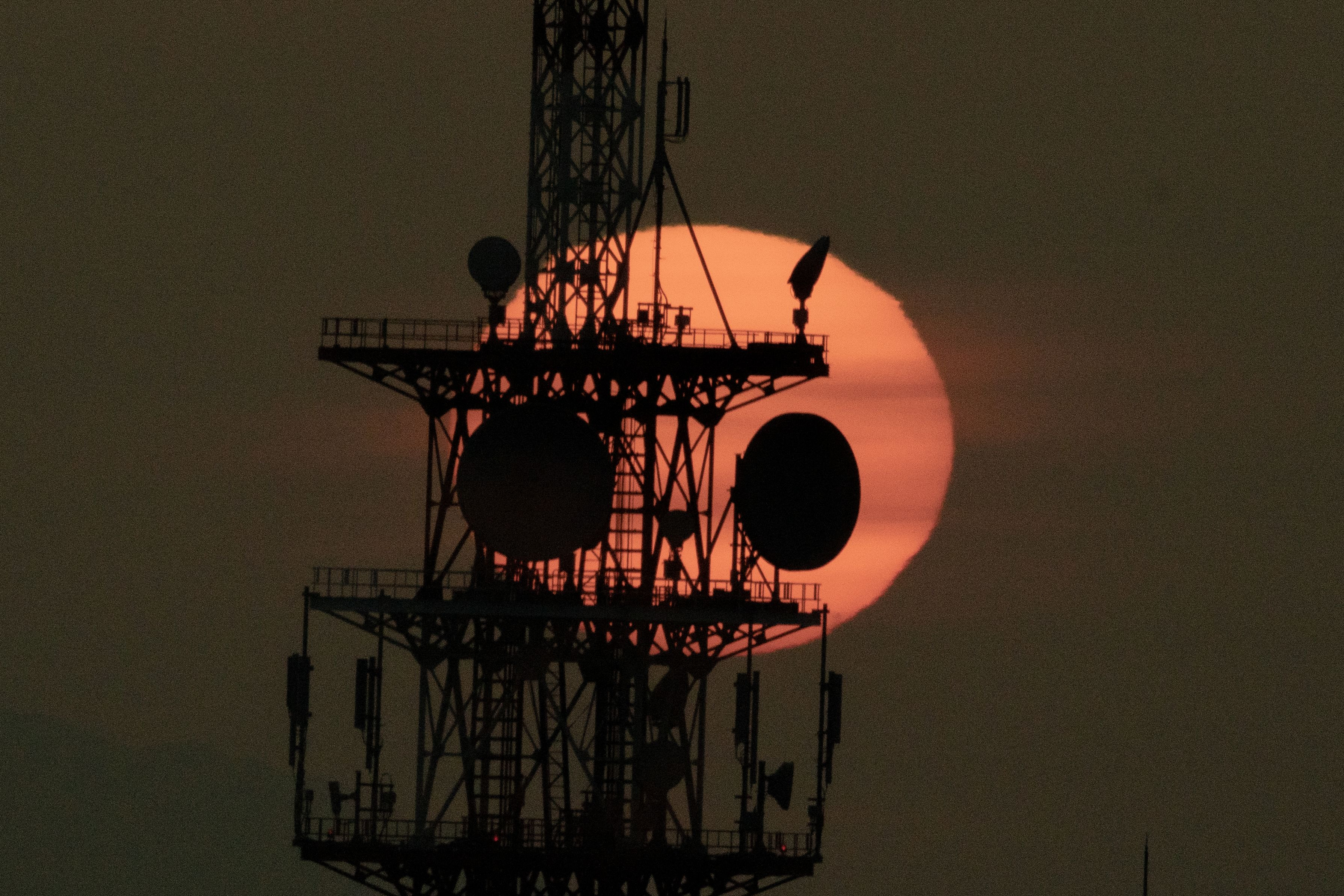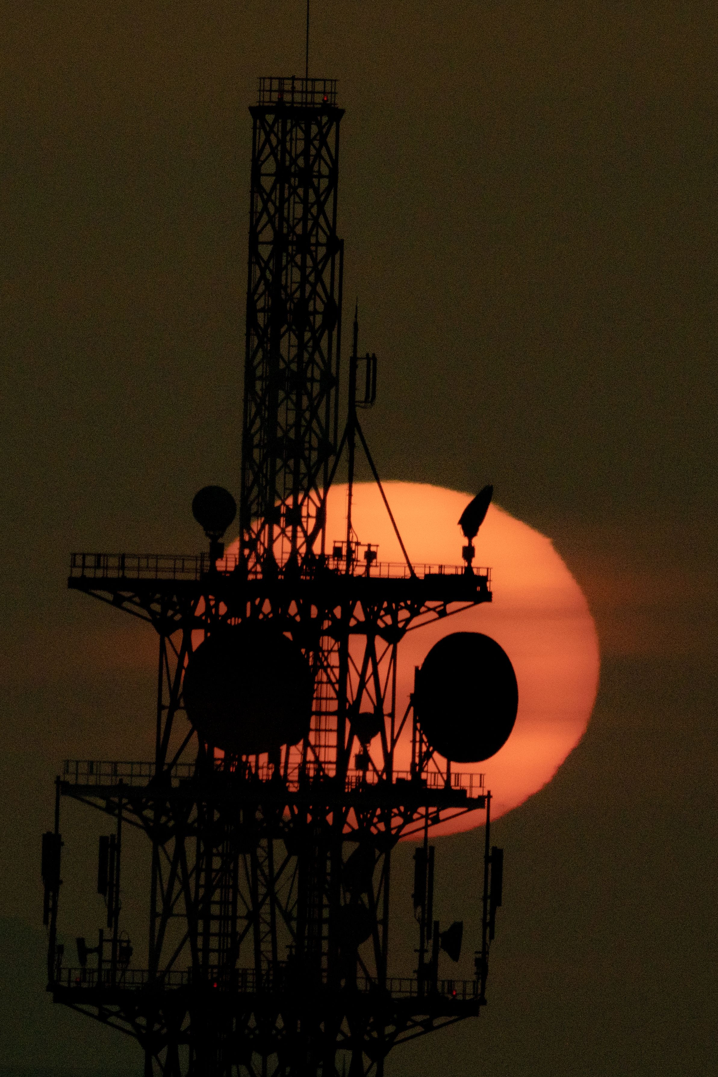 NTTドコモ鉄塔に夕日が絡まり、夕焼けパンダが現れた(7年ぶり)。時間経過とともにパンダの顔の表情が変化していくのが面白かった。